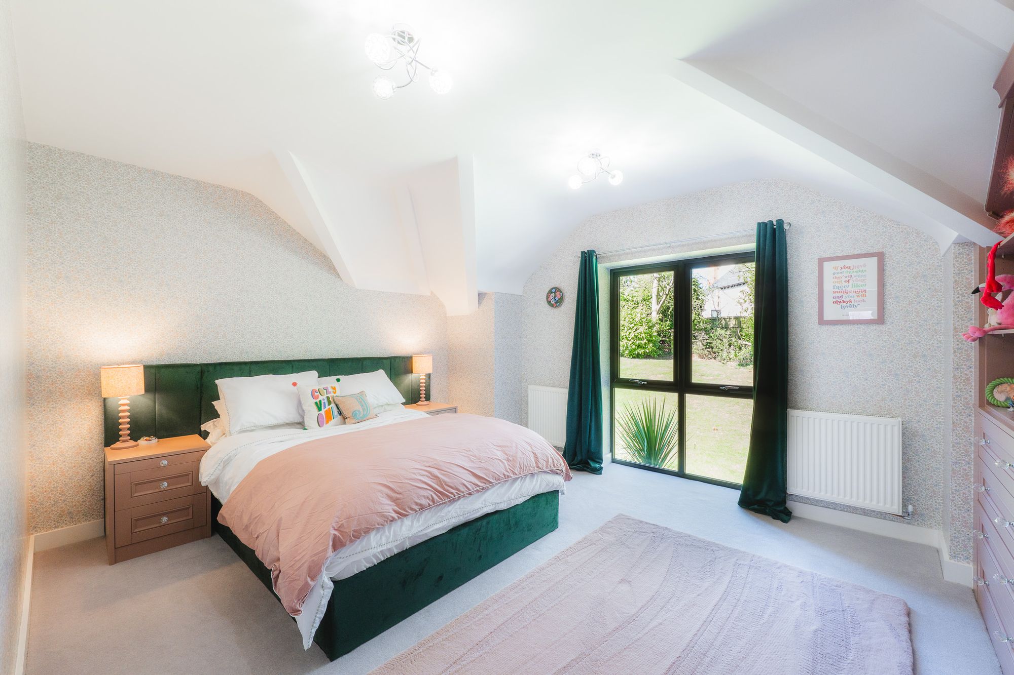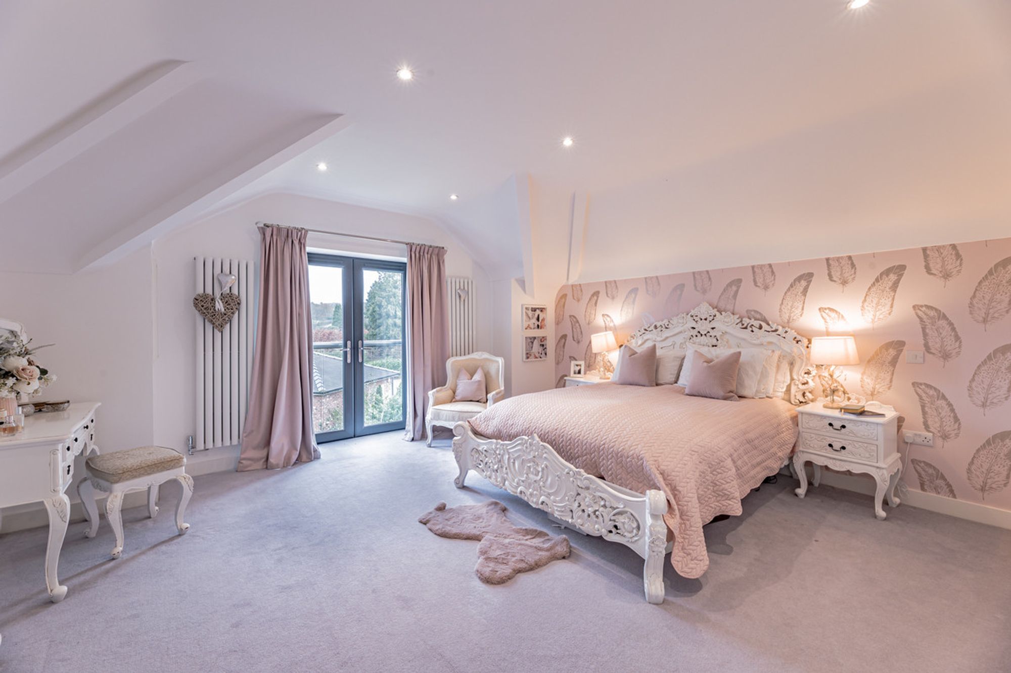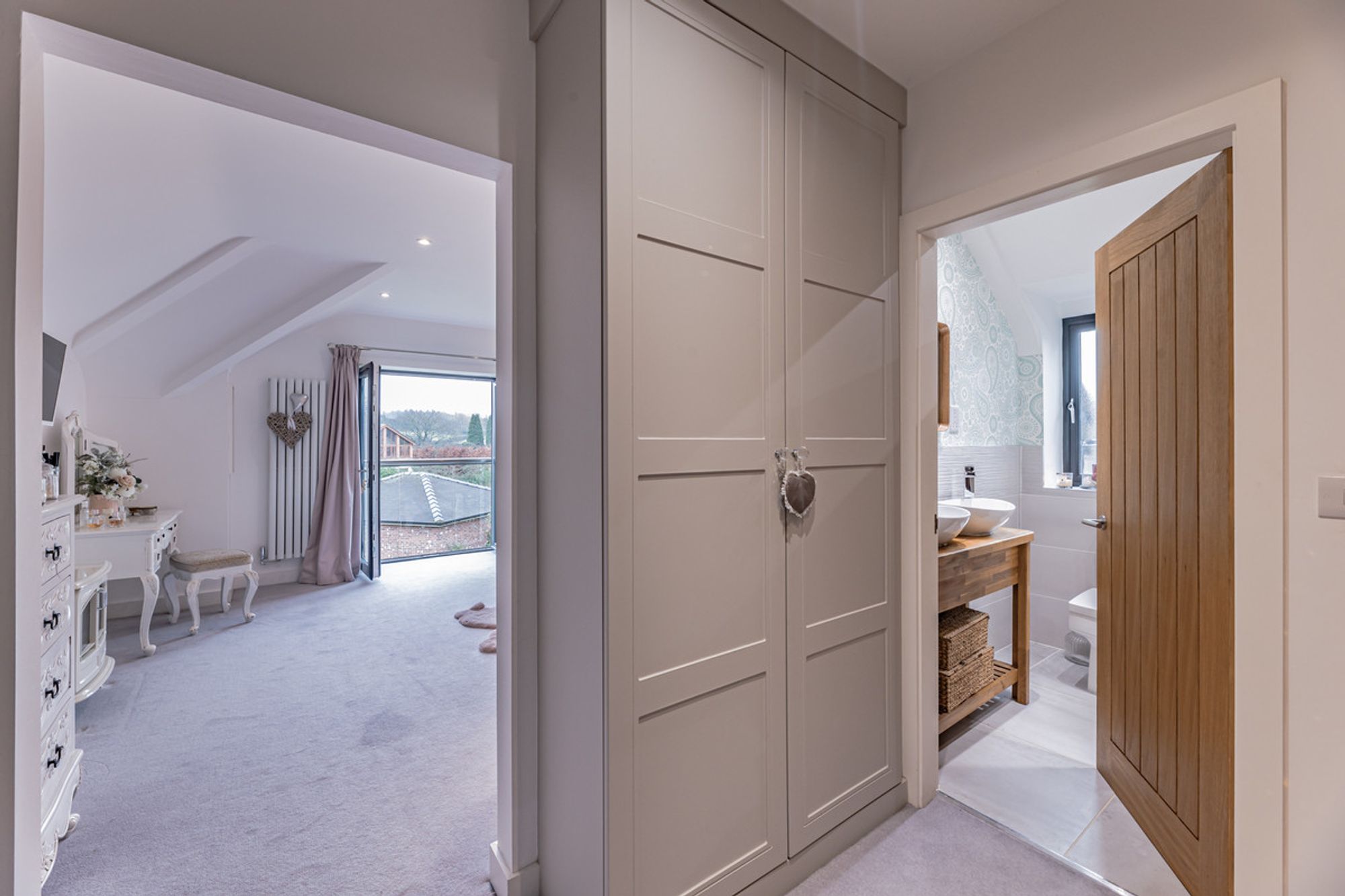 Through the dressing area, complete with fitted wardrobes, you will find the master bedroom. A spacious room with a Juliet balcony that overlooks the gardens and neighbouring countryside.