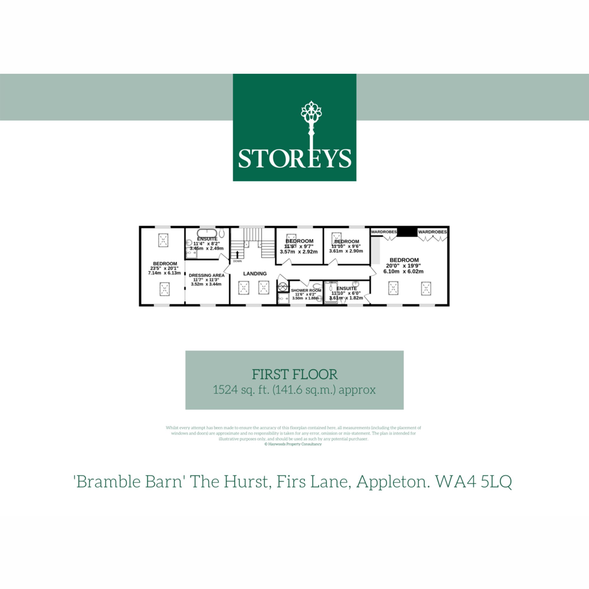 The information Storeys of Cheshire has provided is for general informational purposes only and does not form part of any offer or contract. The agent has not tested any equipment or services and cannot verify their working order or suitability. Buyers should consult their solicitor or surveyor for verification. Photographs shown are for illustration purposes only and may not reflect the items included in the property sale. Please note that lifestyle descriptions are provided as a general indication. Regarding planning and building consents, buyers should conduct their own enquiries with the relevant authorities. All measurements are approximate. Properties are offered subject to contract, and neither Storeys of Cheshire nor its employees or associated partners have the authority to provide any representations or warranties.