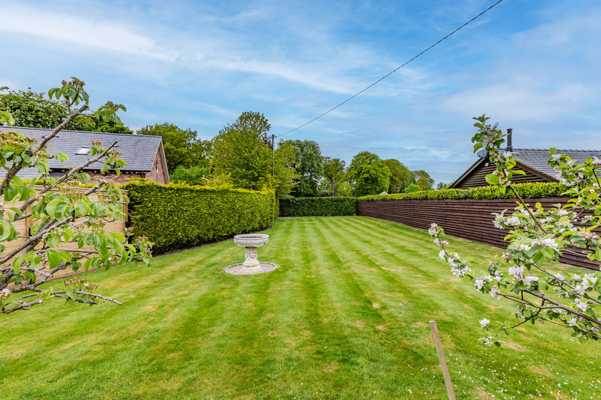 Outside, the gardens of Cassia Green Farm Barn wrap around in a U-shape. Within the length of this letter U are two large, lawned areas, offering alternative outdoor experiences. In the first, there is ample space for garden furniture and a gazebo, with a line of fruit trees, bursting with plum, pear, eating and cooking apples – perfect for pies and chutneys. A second lawn has a more natural, shaded feel, neatly mown yet a haven for wildlife, with visiting birds and foxes. Large, grassy areas to both sides, there is such a sense of spaciousness and seclusion at Cassia Green Farm Barn – your own private oasis of calm.
