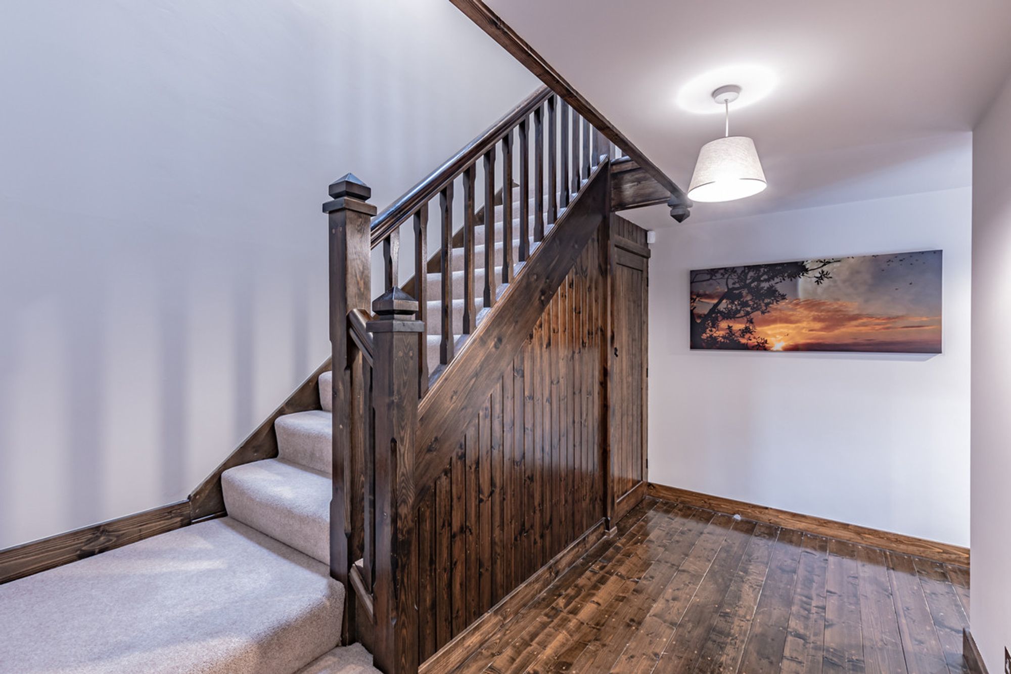 Two oak canopy entrances add a sense of spacious grandeur. Make your way through the first and into the carpeted entrance hall, where wooden flooring remains in situ underneath.