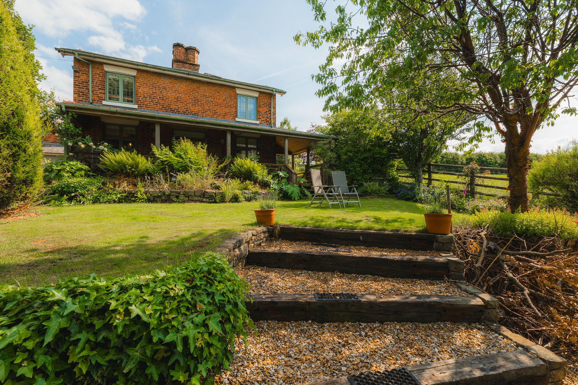 From the top of the garden, the reward is the view out across rolling fields, down towards Norley, with no neighbours in sight, just a distant farmhouse and the occasional grazing cow.