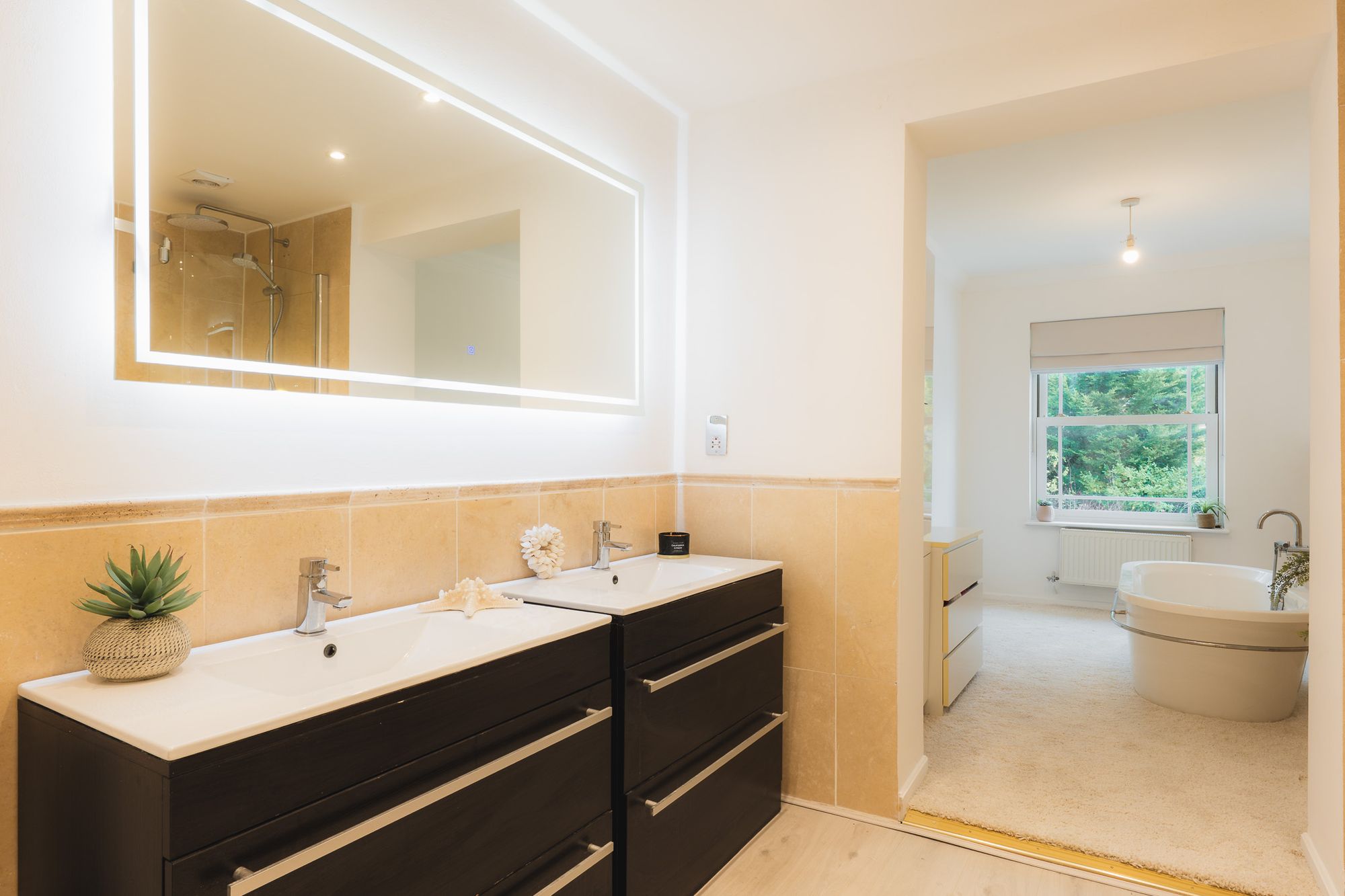 From the dressing room, spa-style luxury awaits in the Jack ‘n’ Jill bathroom, furnished with walk-in shower, modern WC and wash basin alongside a heated towel radiator.