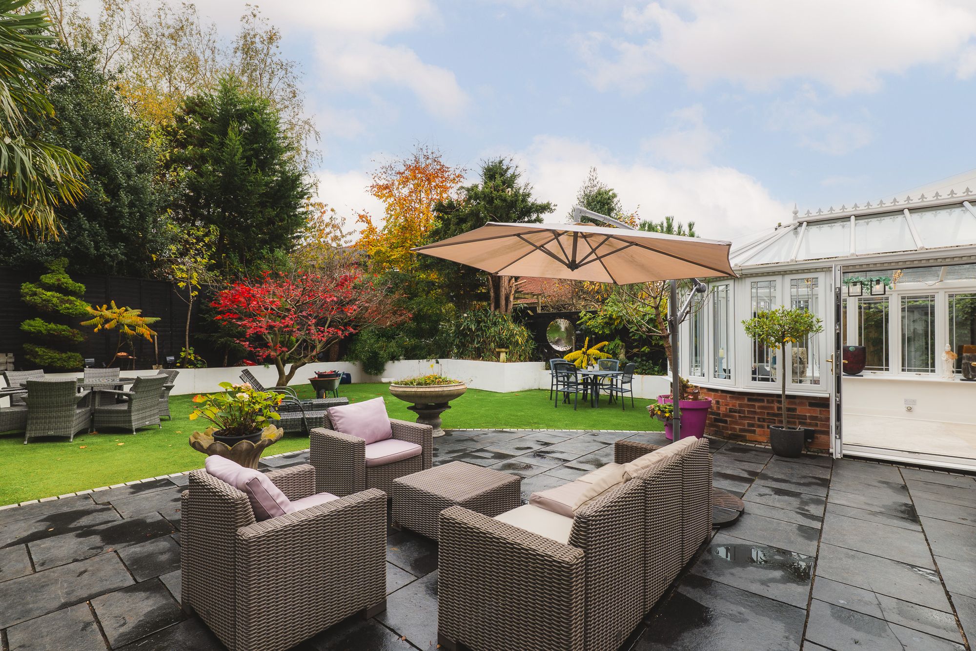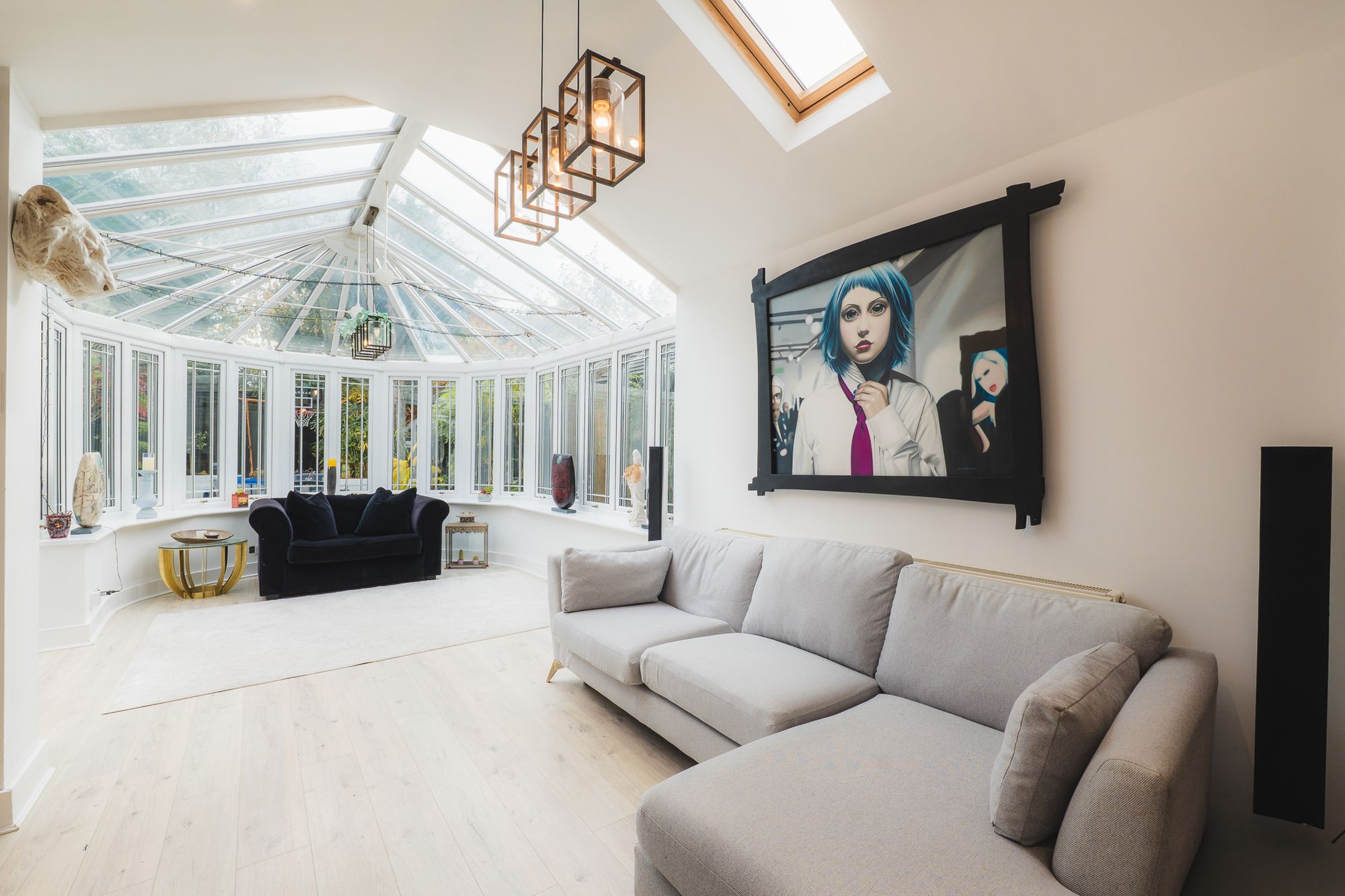 Follow the effortless flow of the home through to a spacious orangery, flooded with wraparound light and offering direct access to the garden. Versatile and adaptable, this room is ideal for gatherings, flowing off from the sociable kitchen and perfect for buffets.