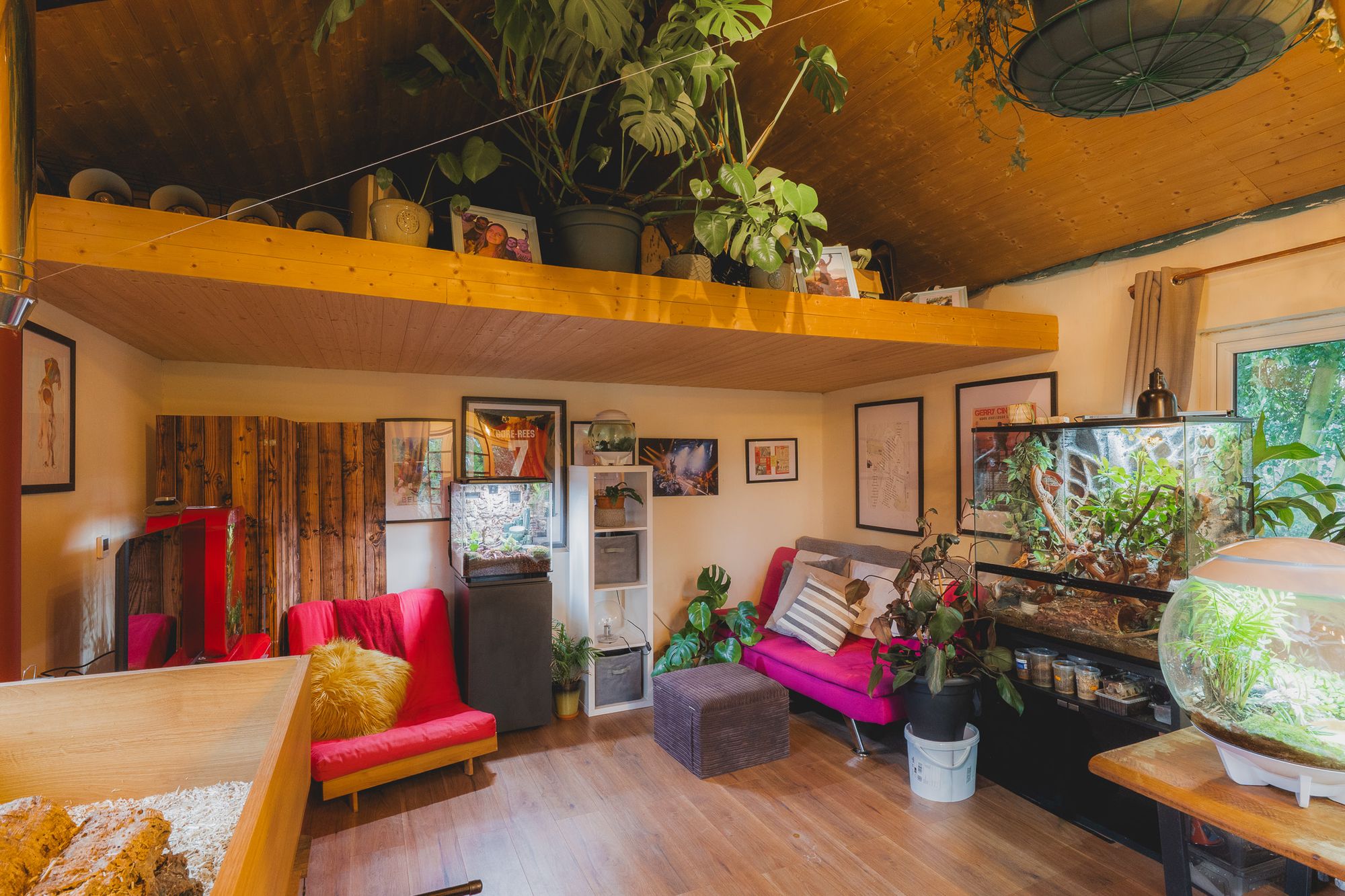 A mezzanine level sits above, currently used for storage but easily adapted to accommodate a low bed or futon, creating an almost self-contained den. With French doors opening to the driveway, not only is this a peaceful place in which to work from home but ideal for entertaining and a welcoming space for friends to stay.