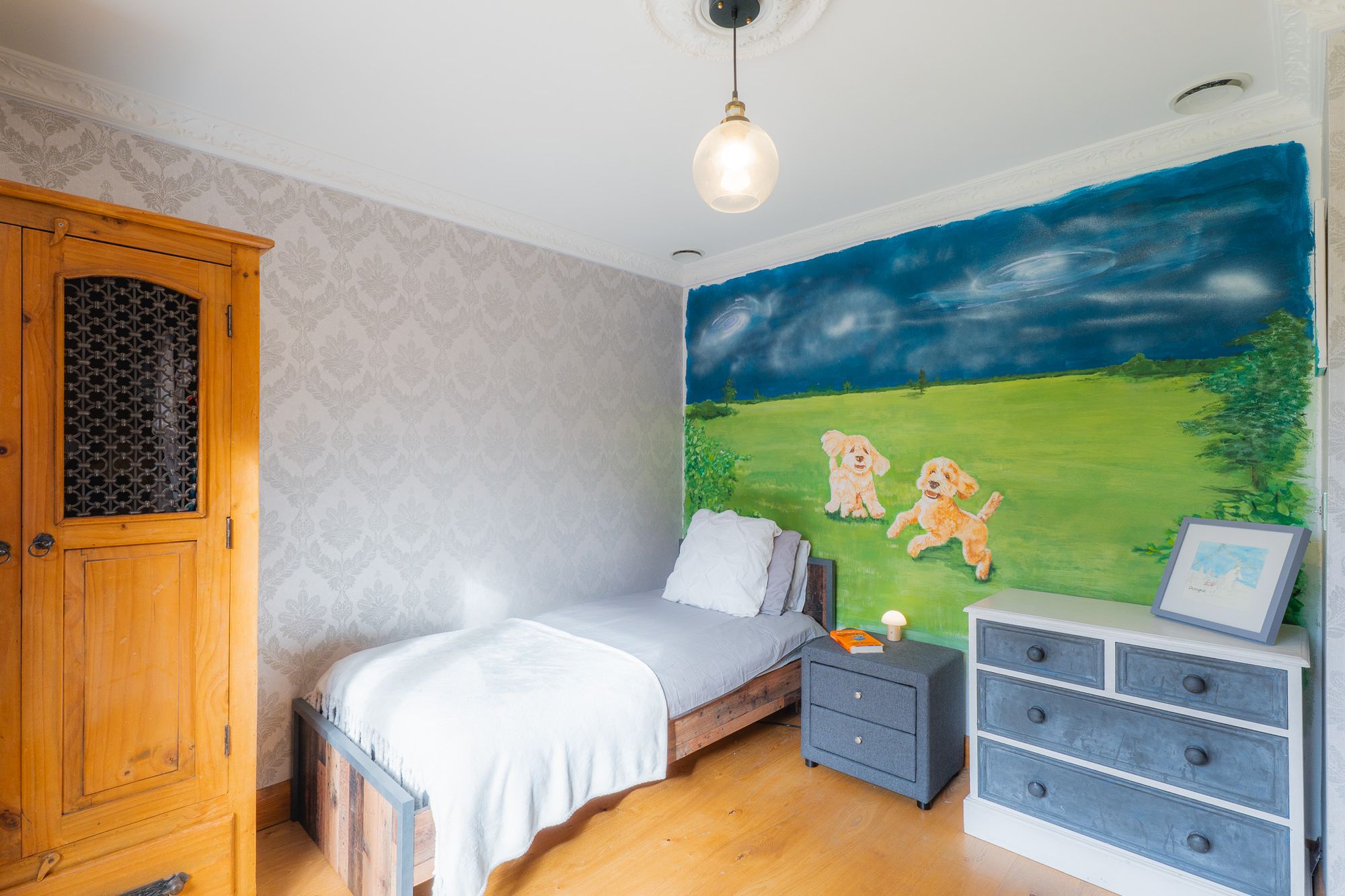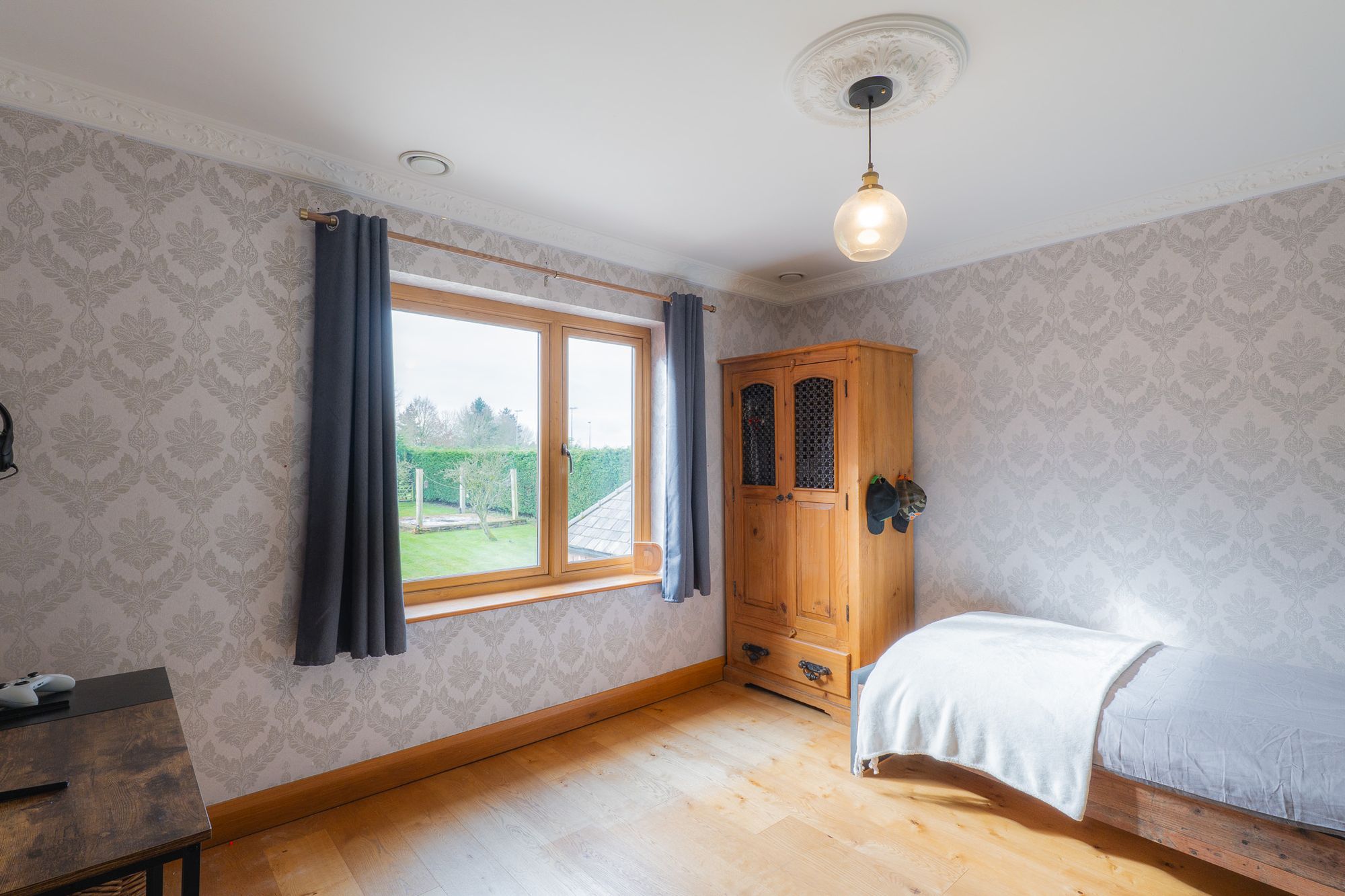 Overlooking the front, a third inviting guest double offers enchanting views out, with oak flooring underfoot.
