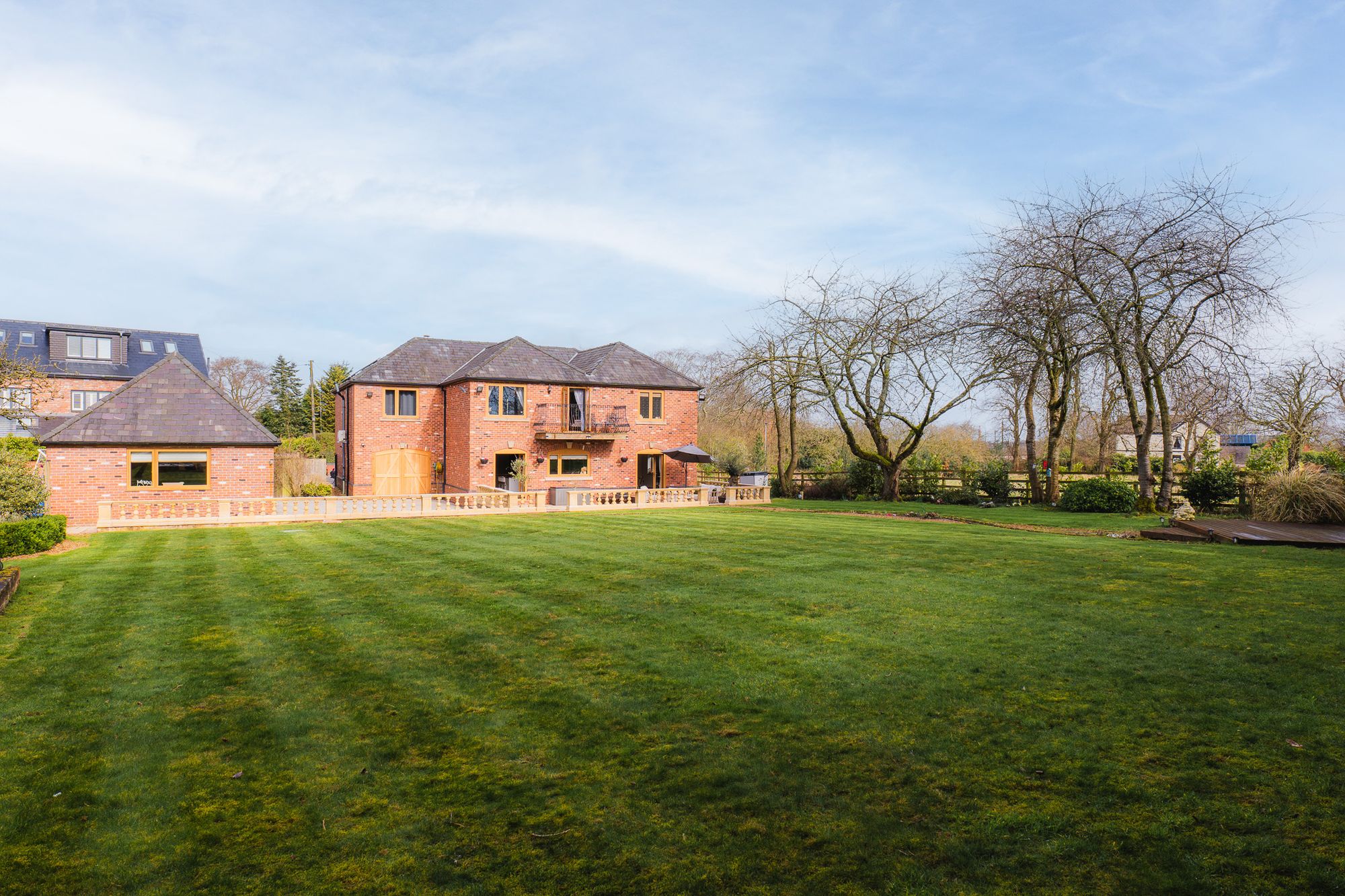 Thoughtfully positioned trees encircle the garden, offering complete privacy and a enhancing the sense of total seclusion that pervades, whilst the abundance of planting encourages nature and wildlife. Grow your own in the vegetable plots, whilst the advanced irrigation system keeps planting pristine, ensuring vibrant flower beds and thriving greenery year-round.