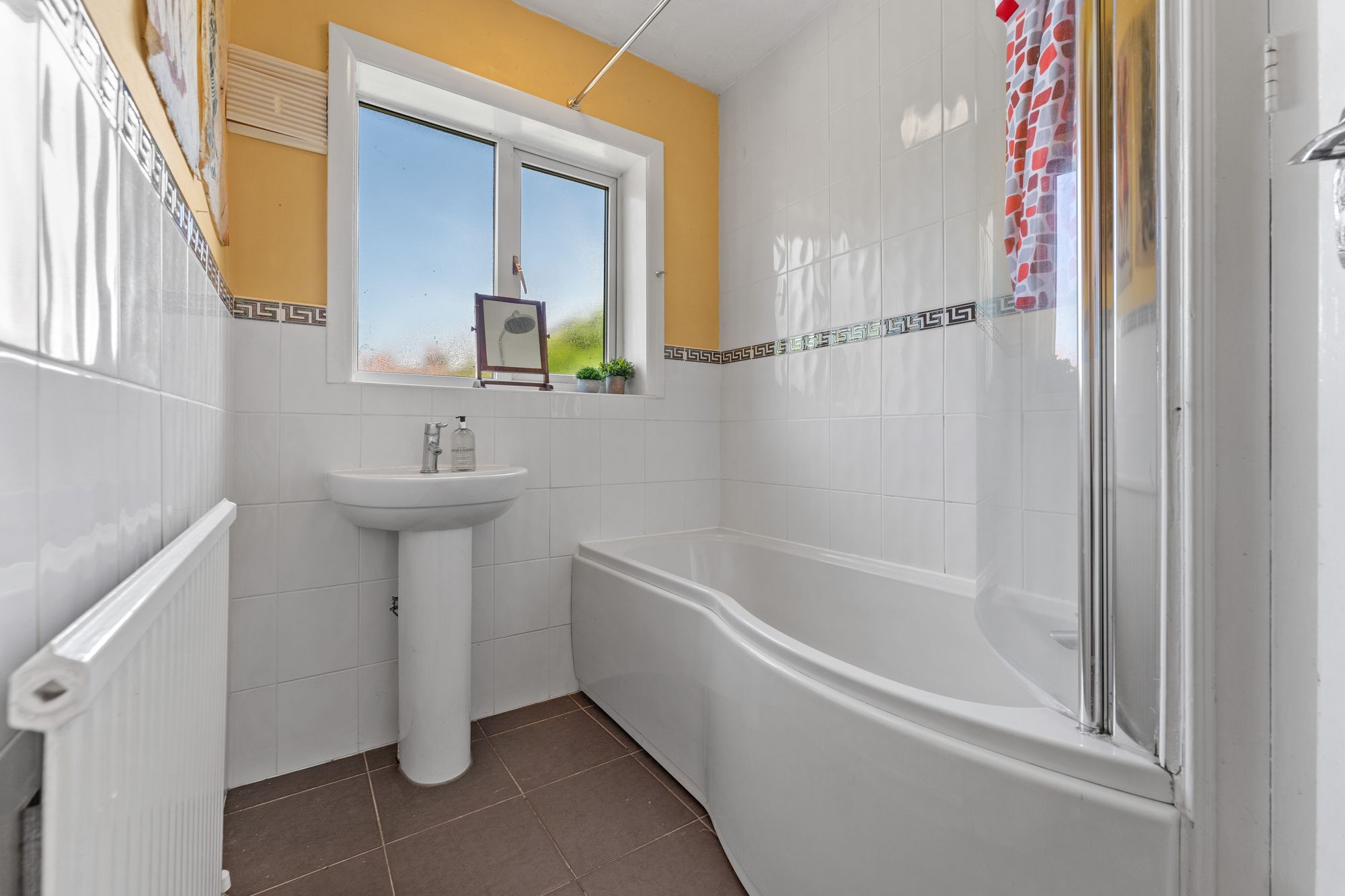 Turning right from this bedroom, continue along the landing to arrive at the family bathroom, where a P-shaped bath accompanies a wash basin and WC. Next door, a separate WC can be found.