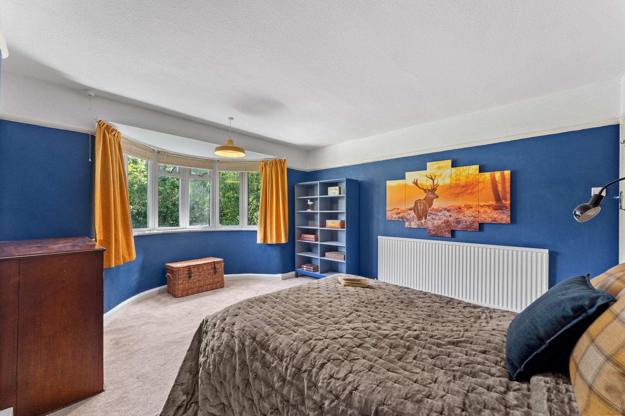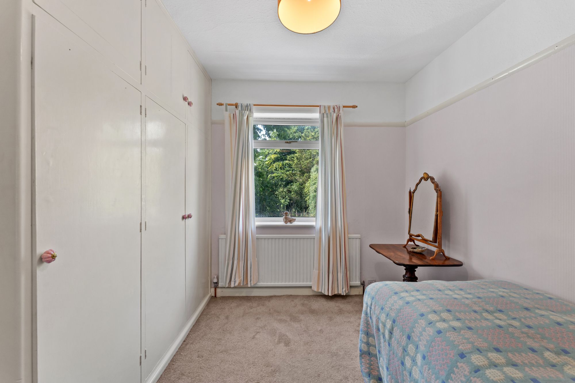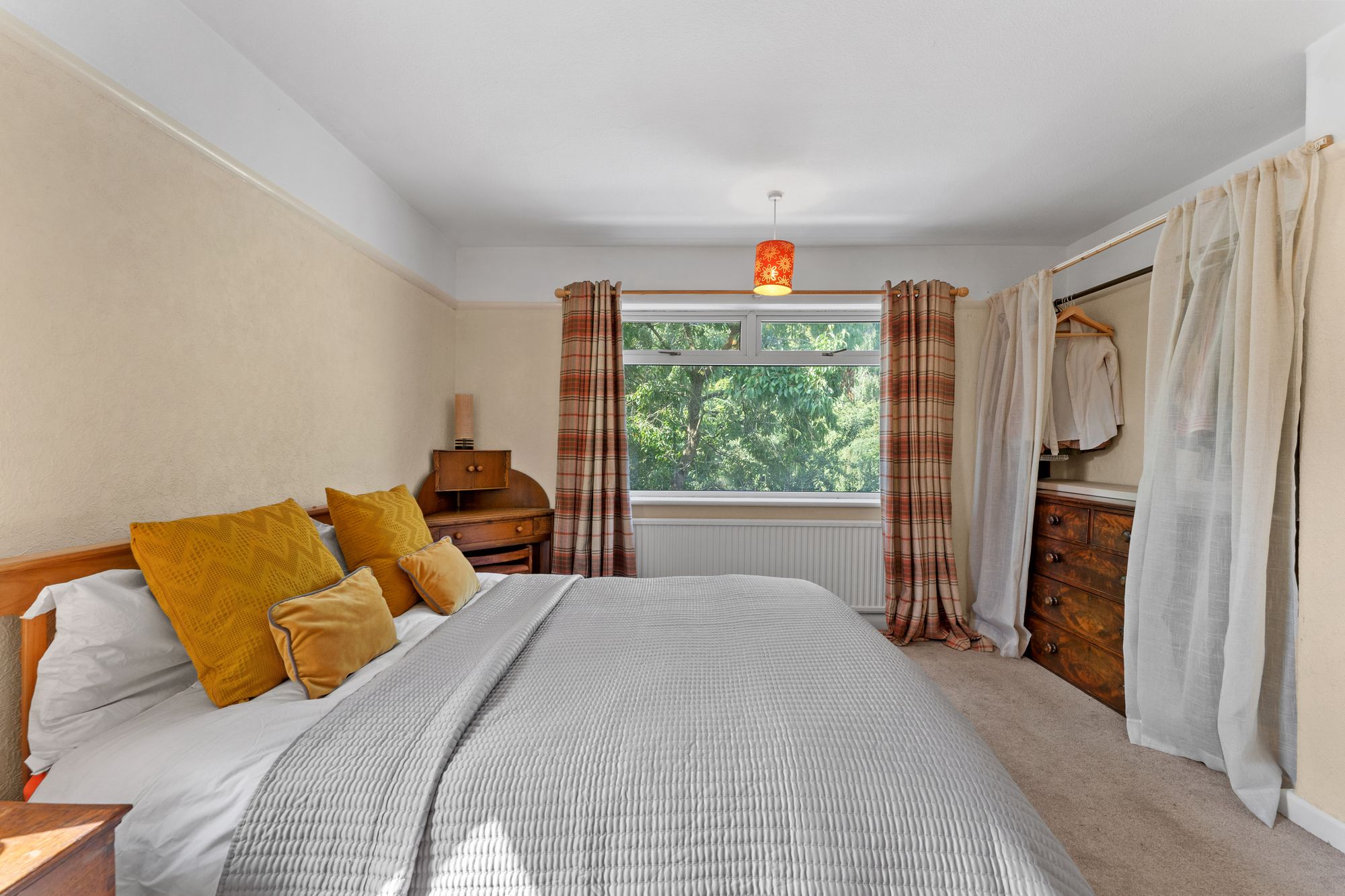 Dressed in peaceful, neutral shades, the third bedroom lies to the rear, with leafy views out over the garden and soft carpet underfoot, ideal for use as a nursery.