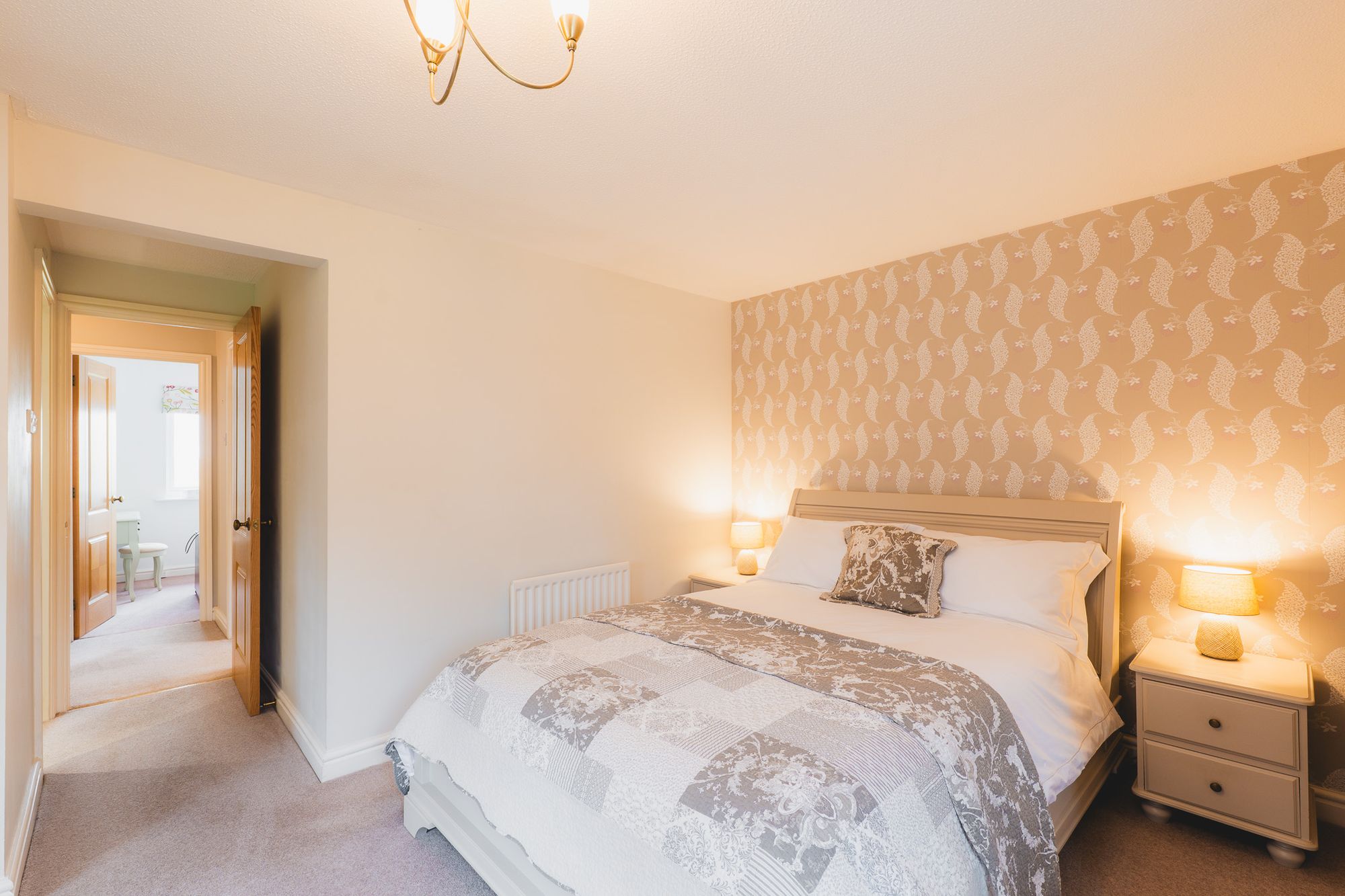 Next door, a second double bedroom draws in stunning elevated views over the rolling countryside. To the right of the stairs, two further bedrooms, one overlooking the garden and fields to the rear, and another peacefully positioned to the front, are bright, comfortable spaces ideal for family or guests.