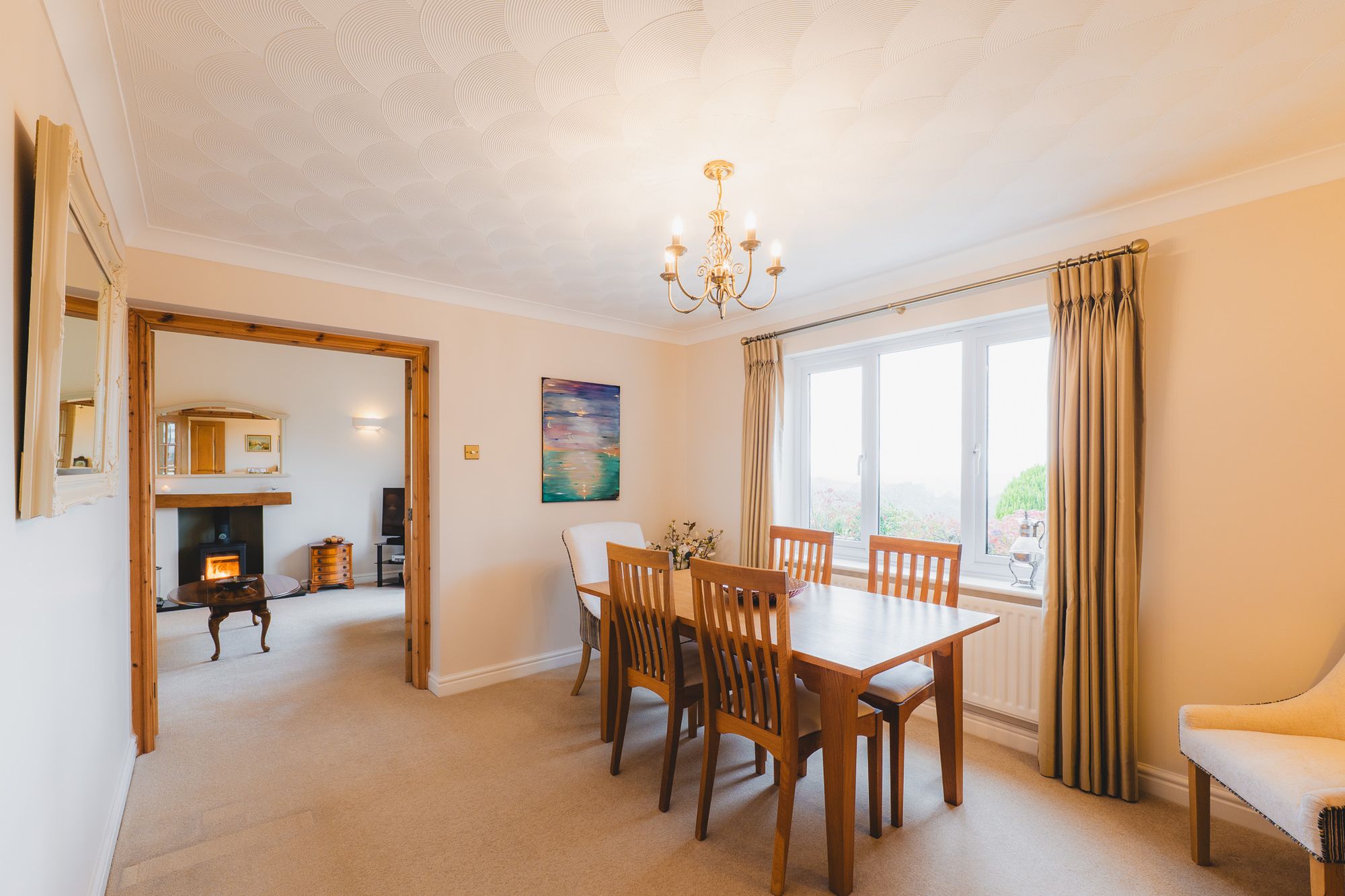 Savour the incredible, elevated views out over the garden and countryside from the formal dining room next door, where the home transitions from distinguished development to real rural living.