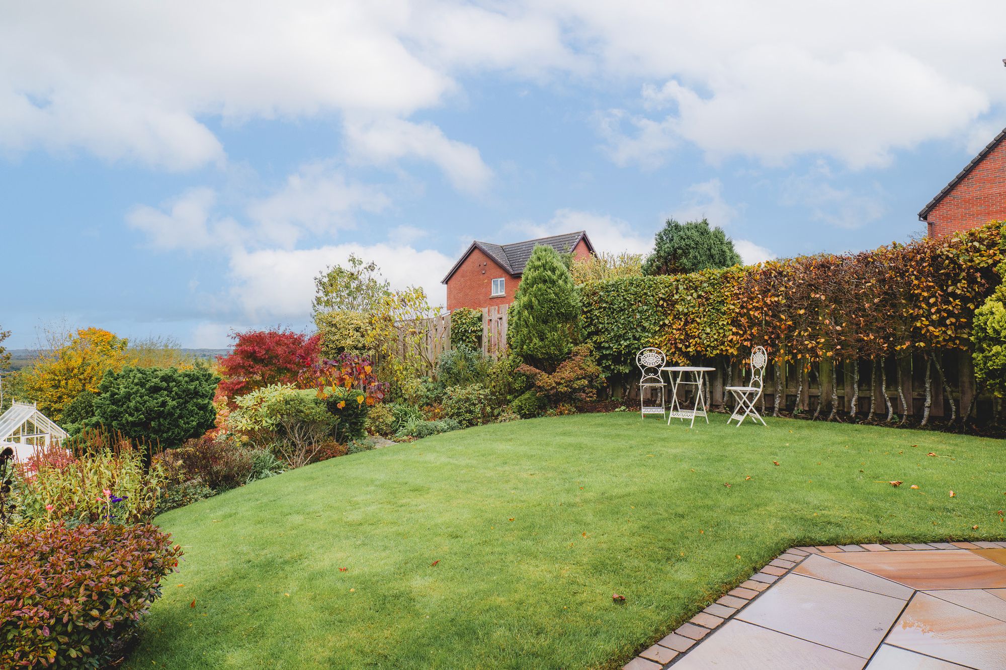 Keen gardeners, the owners have landscaped and nurtured the garden over the years, extending the beds, planting trees for all-season colour and adding a Victorian style greenhouse and vegetable plot for home-grown produce.