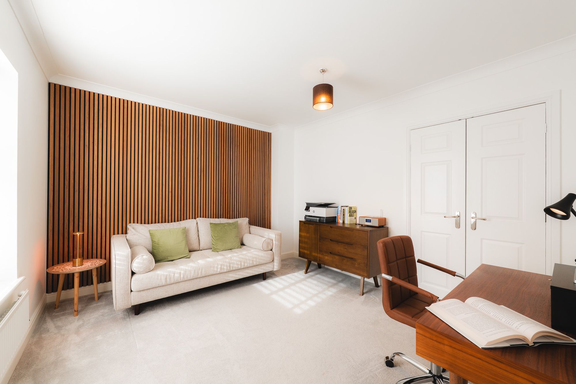 Freshen up in the WC to the left, while to the right, the snug serves as a quiet, contemporary space with a light, Scandi-influenced palette. Its outlook over the colourful front border gives the room a calm feel making it ideal as a second sitting room. Connecting through to the kitchen, the snug has previously served as a play room, highlighting the versatility and adaptability of the home.