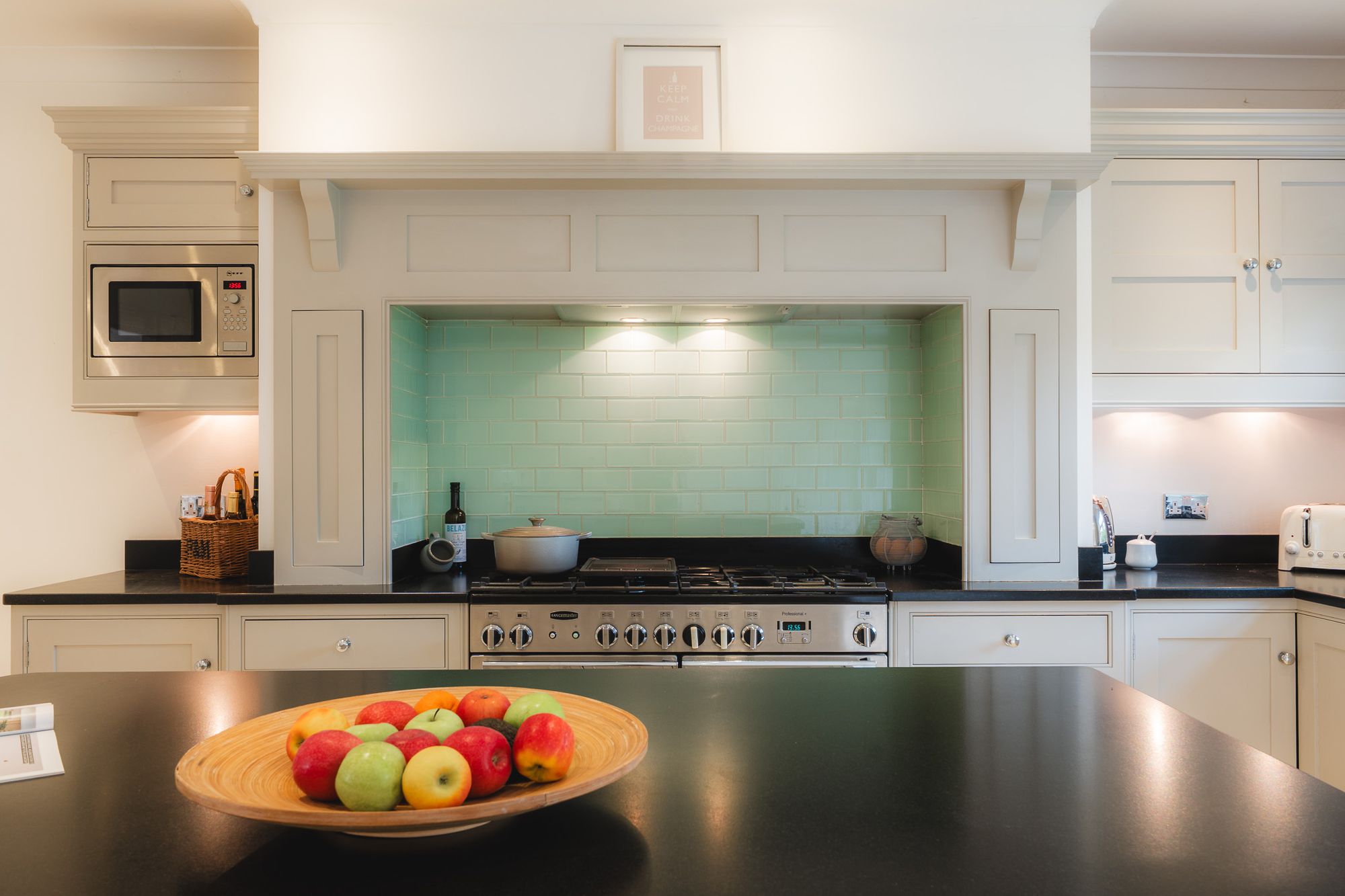 Blending the homely comfort of day to day living with the capacity to host, the kitchen is a naturally sociable space, with ceiling spotlights and integrated speakers perfect for those entertaining moments. A large central island offers space for family and friends to gather over a glass of wine, while the Rangemaster set within the inglenook creates an inviting ambience.