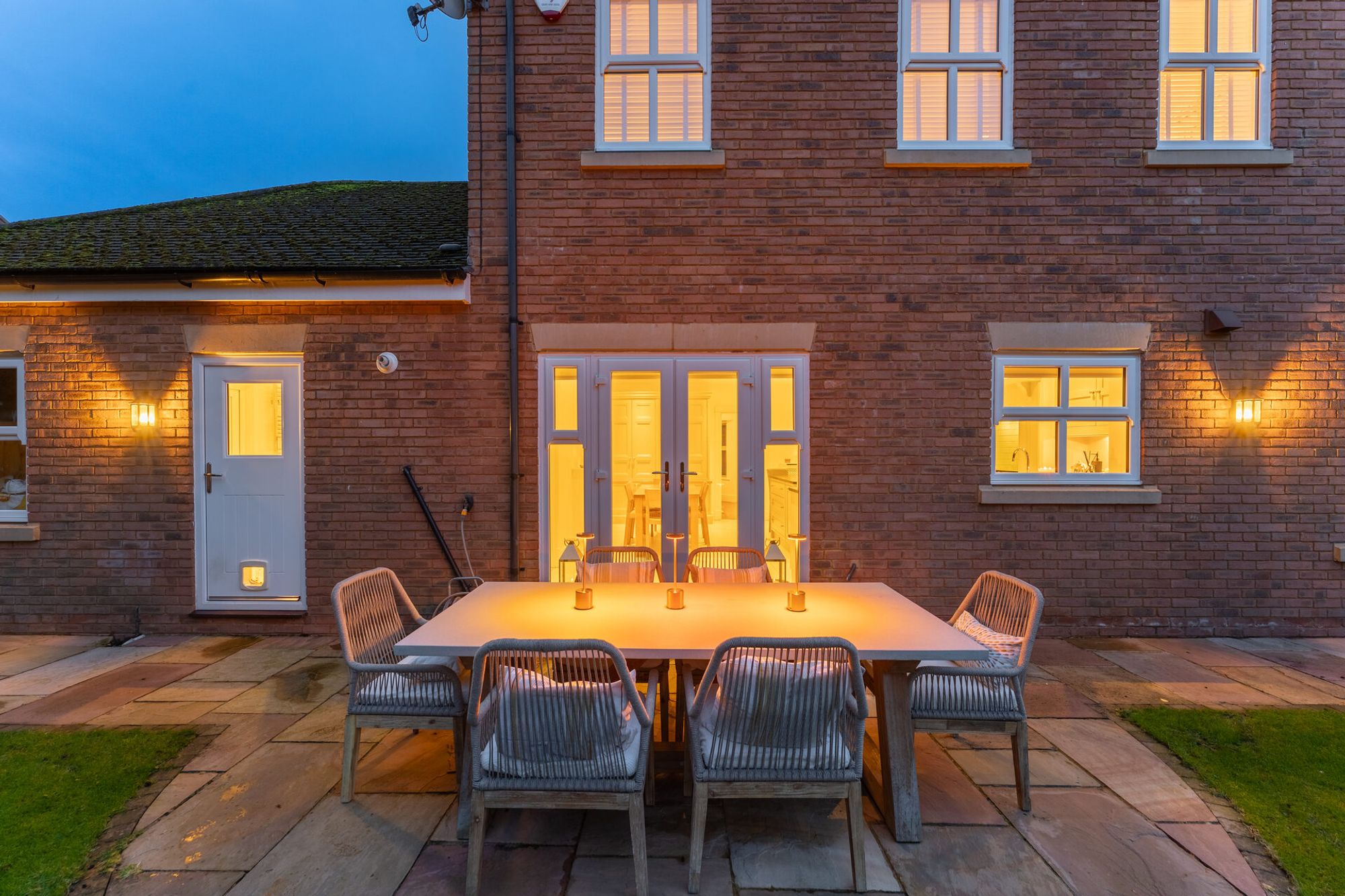Pushing out to the rear like the prow of a ship, the garden at No. 29 Broughton Close opens into a compellingly versatile outdoor space. Its gentle triangular sweep creates natural pockets for al fresco enjoyment, with a broad patio for sizzling summer barbecues, a quieter corner arranged for evening aperitifs and easy access, when entertaining, back into the dining kitchen for refills and relaxed buffet-style gatherings.
