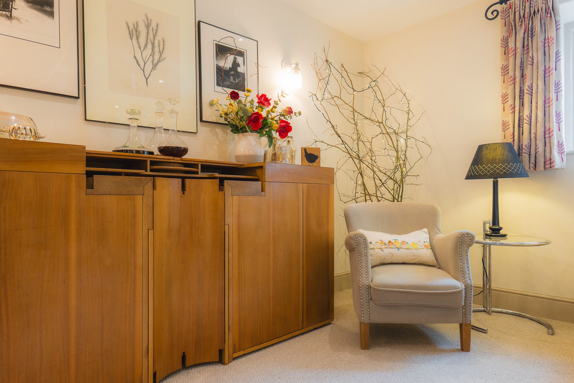 Invitingly intimate, the lounge lies directly ahead from the main entrance, offering plenty of space for a series of sofas or armchairs and cosily carpeted underfoot. Light and views beckon through the windows to the rear, whilst in wintertime, the log-burning stove, snug beneath the wooden lintel, provides comforting cheer.
