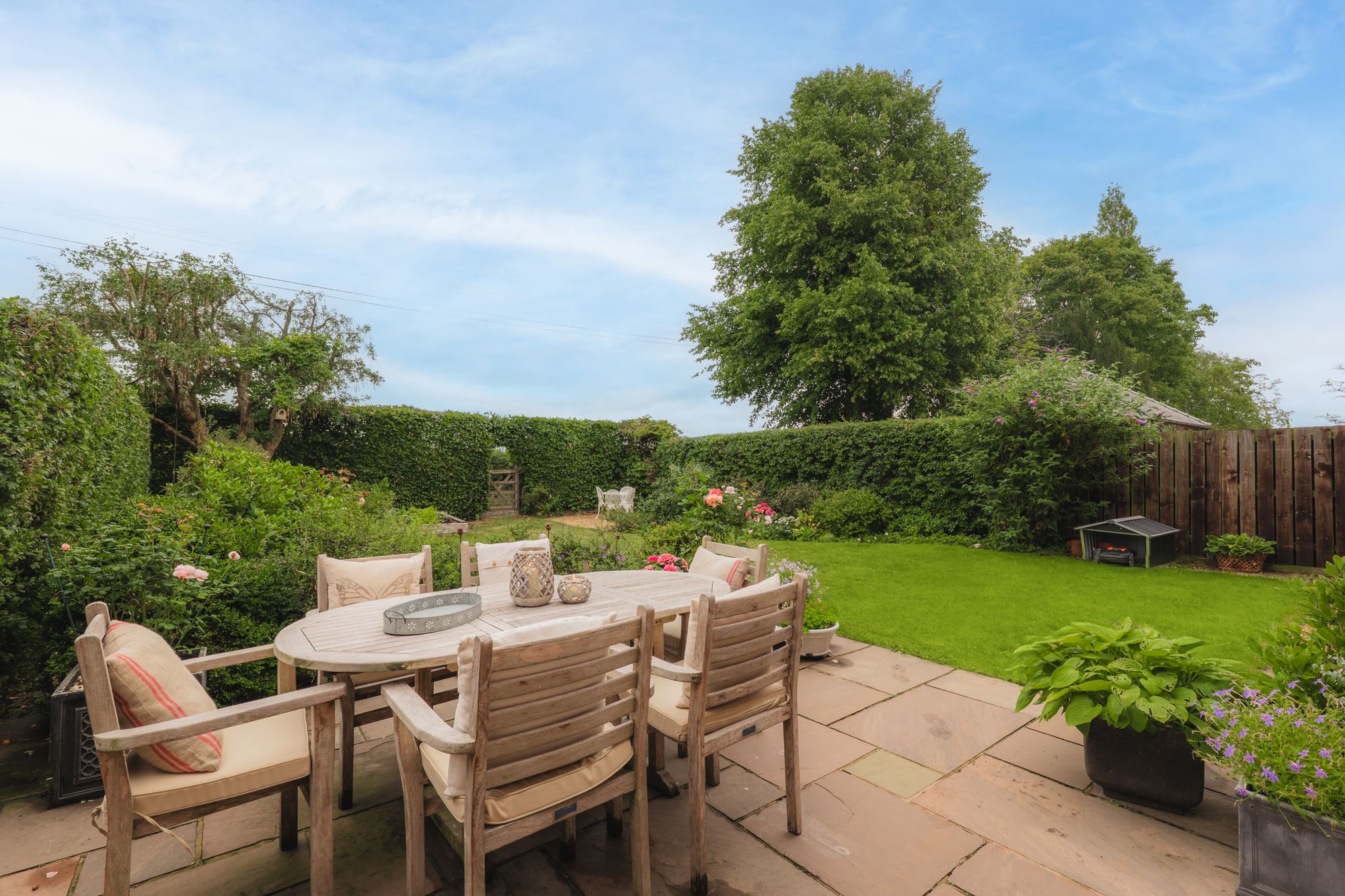 Beneath the blue Cheshire skies, the garden at No. 3, Parkside Barns stretches back to flourishing beech hedging, home to an abundance of wildlife and offering both privacy and shelter. In the far corner, a laburnum tree bursts into scented yellow blossom each May, chasing the heels of the early spring flowers. A raised vegetable patch produces a prolific glut of raspberries, spinach, lettuce and other wholesome delights throughout the growing season and could equally be used to grow cut flowers. In July, buddleia, one white, one mauve, draws the attention of butterflies and other pollinators.