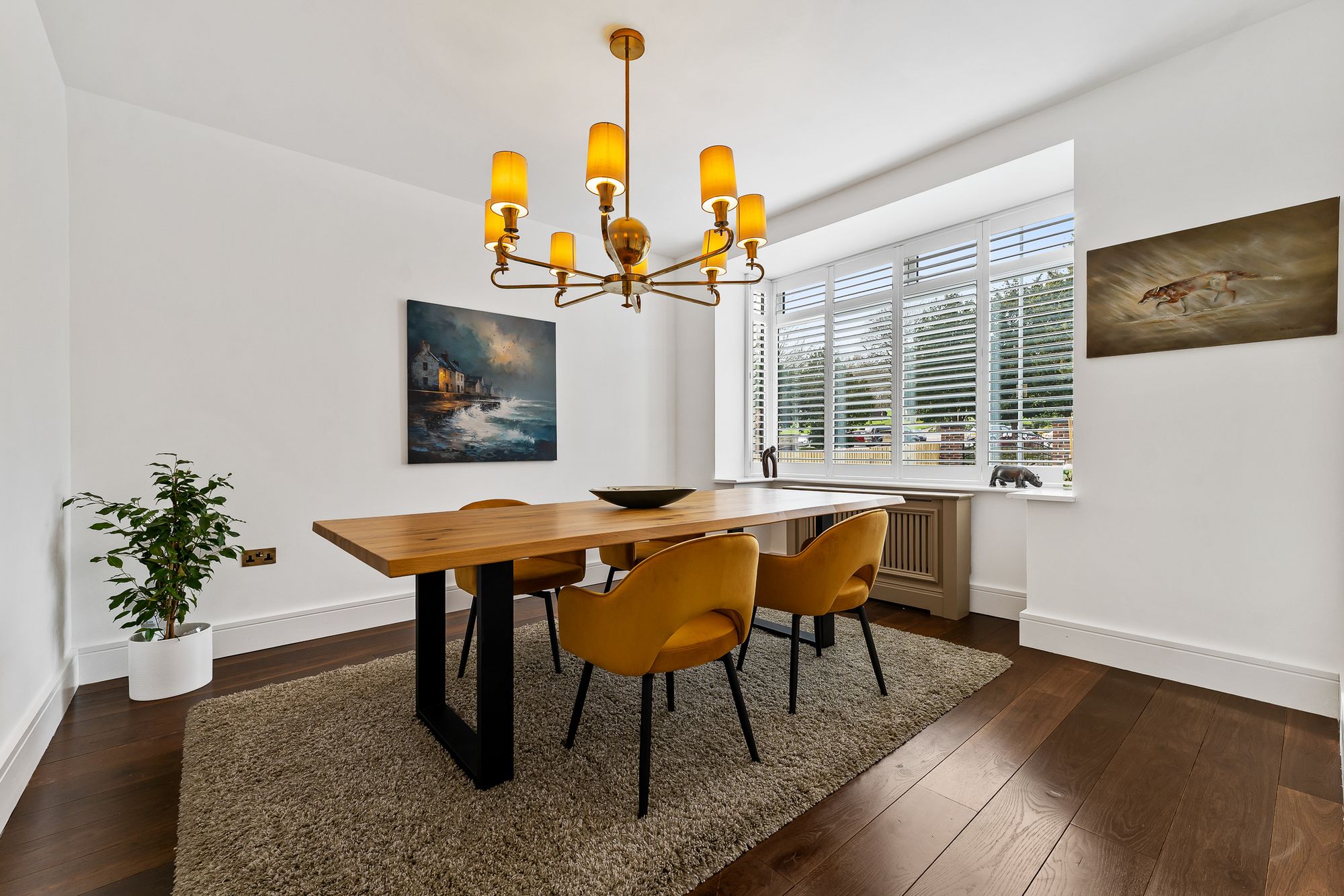 Throughout, classic blends with modern, with chic panelling, minimal tones and plantation shutters featuring in the windows.