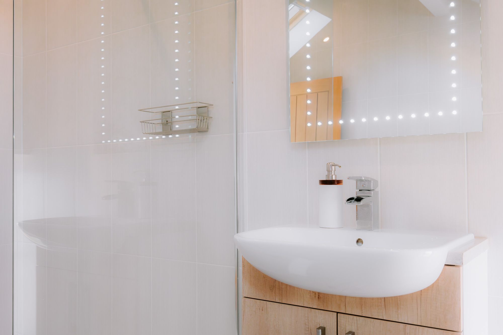 Freshen up in the spacious shower room ensuite, where beneath the wash basin, ample storage awaits in the vanity unit cupboards and drawers.