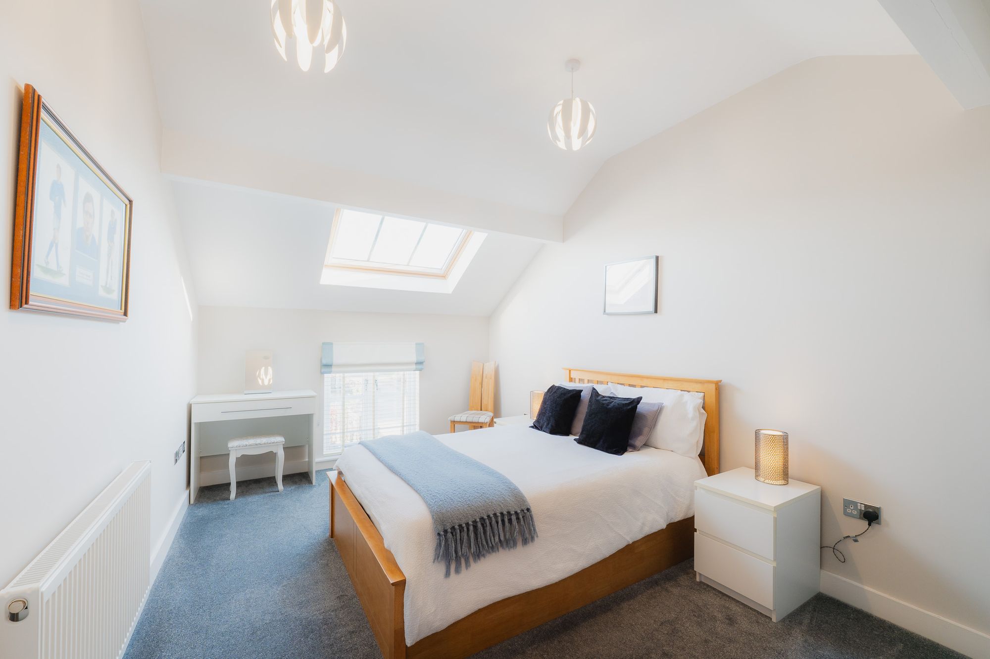 Next door to the bathroom, windows at both floor and ceiling height fill the second bedroom with light, for an airy and inviting feel.