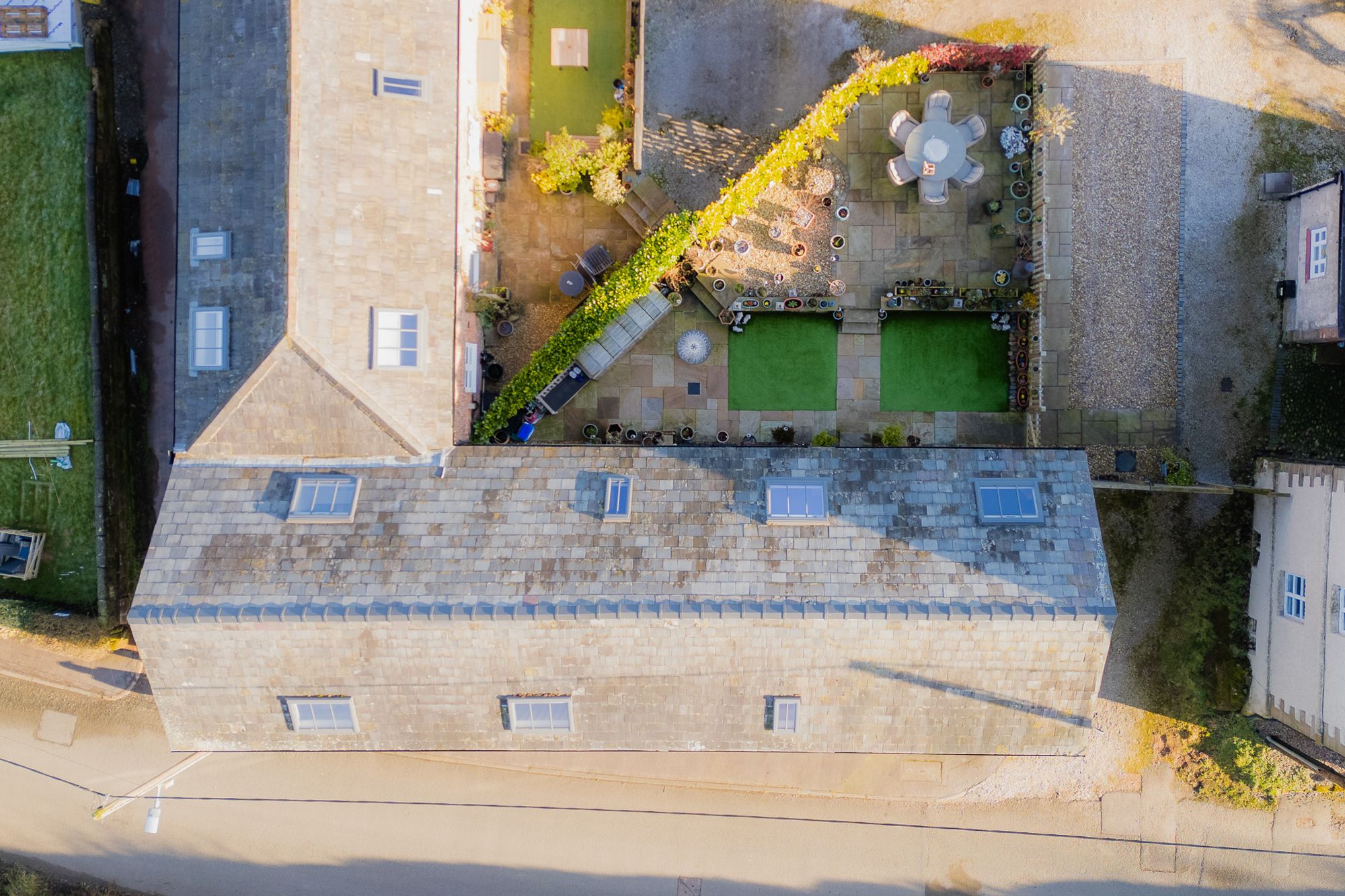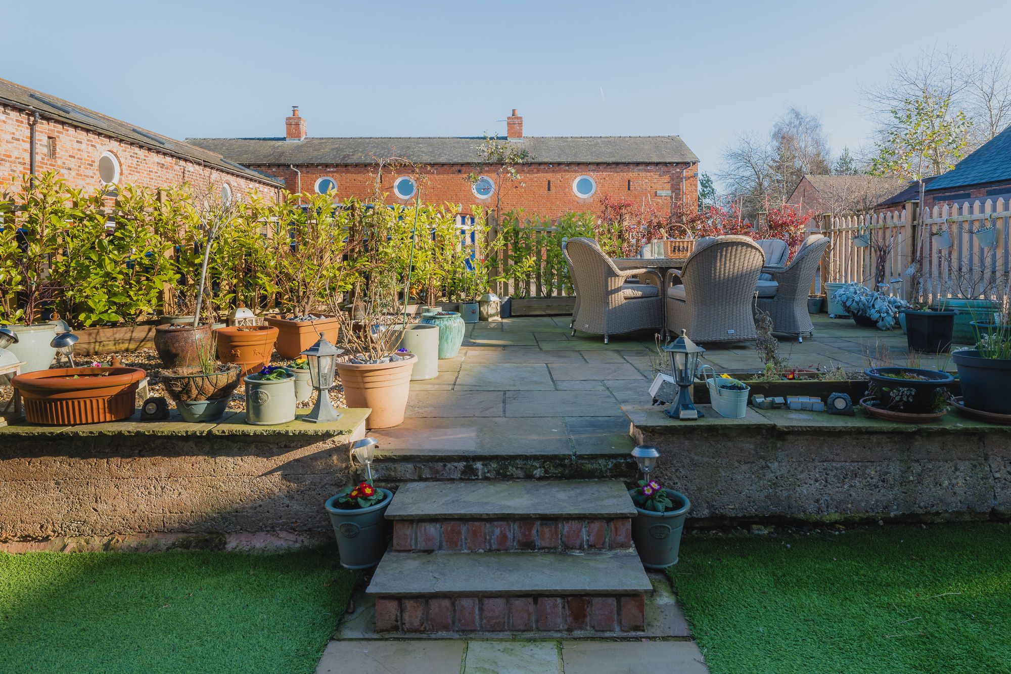 Below, the low-maintenance astro turf provides a lush, green space that stays accessible year-round - perfect for children's play and pet-friendly too. With only five homes nearby, the garden enjoys a secluded, tranquil feel, making it a peaceful, private retreat. Bathed in sunlight from early morning until 8pm, enjoy the sights and sounds of nature until late into the evening.