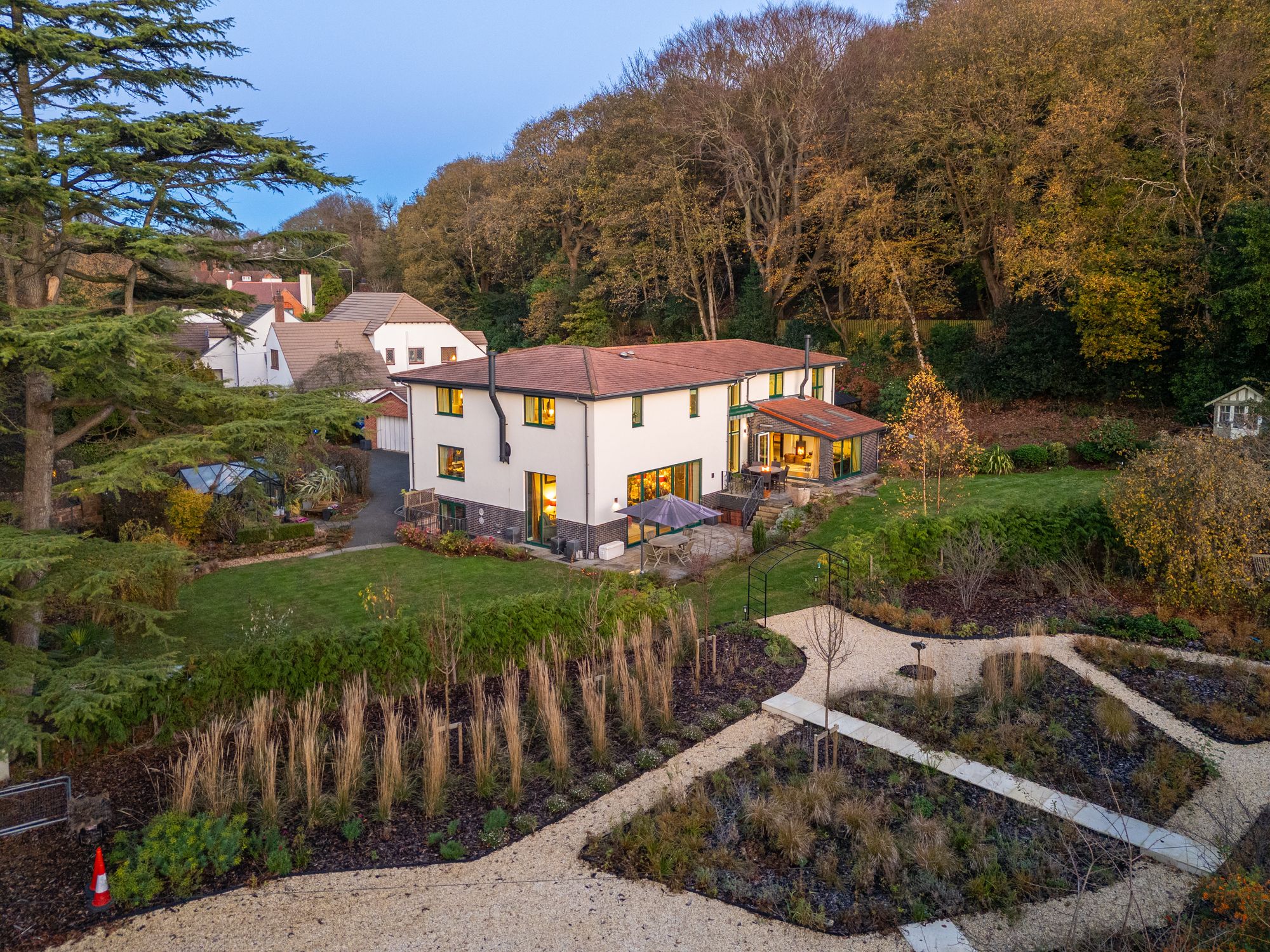 Set against the wooded rise of Frodsham Hill and just steps from the starting point of the Sandstone Trail, No. 51 Howey Lane is a bespoke, high-spec build created to bring families together… and it also holds two stand out surprises: a beautifully finished two-bedroom annexe and a garden plot with previous planning permission for a further home.