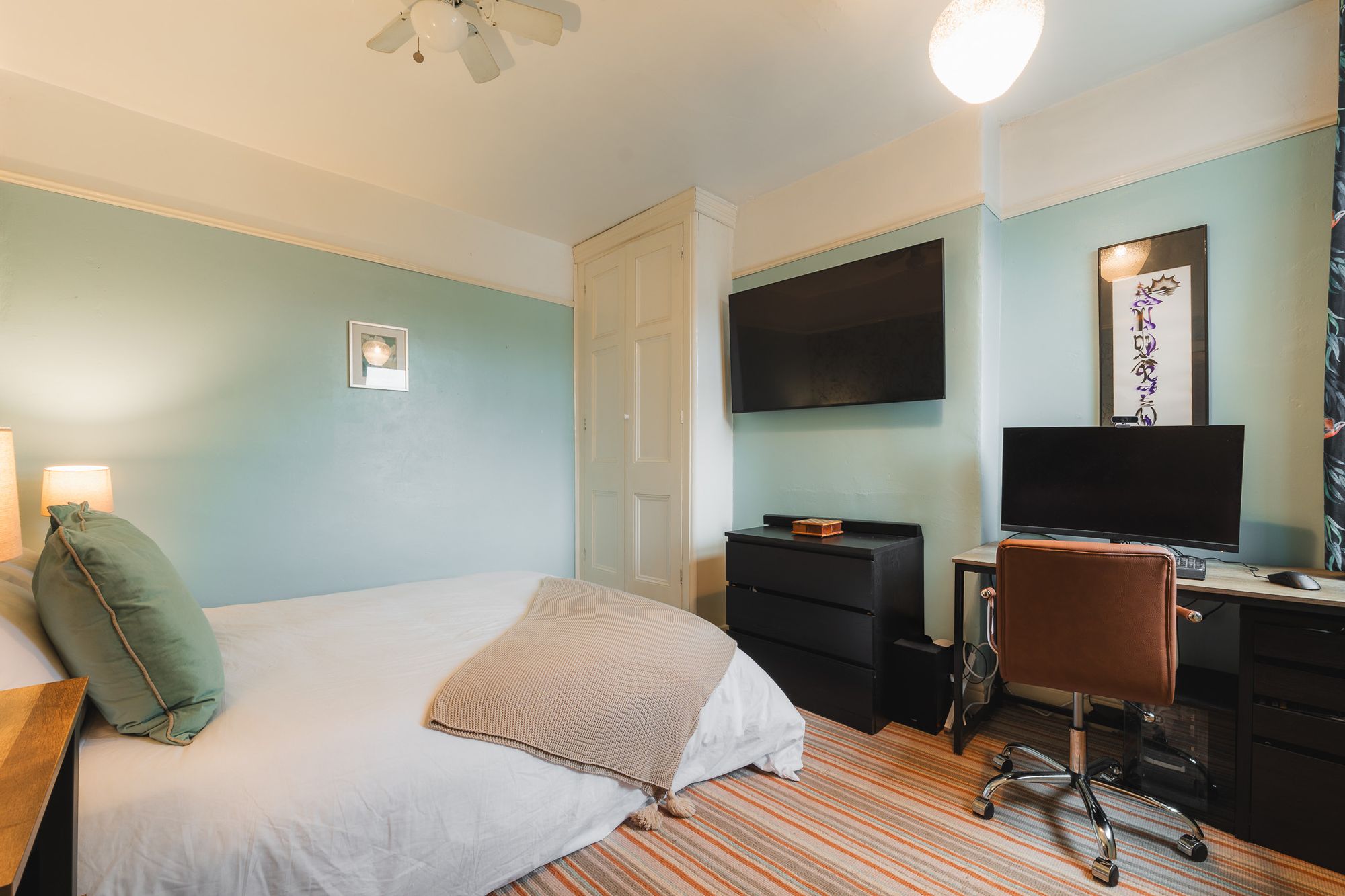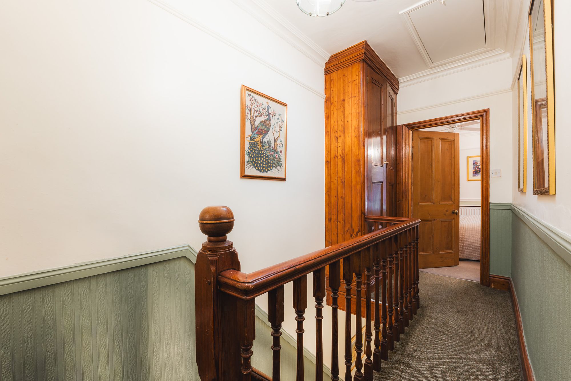 Returning along the landing, turning right at the top of the stairs, a third double bedroom features handsome, original built-in cabinetry and plenty of space for a range of furniture.