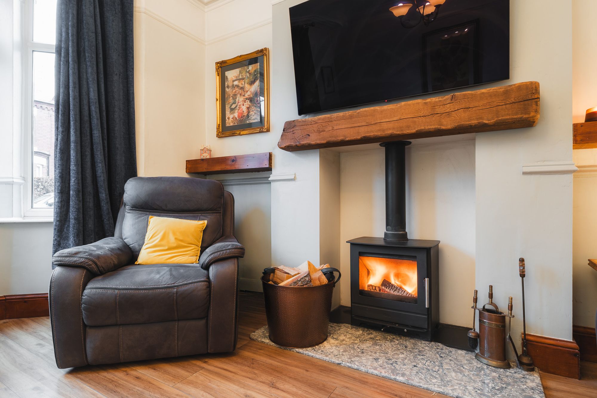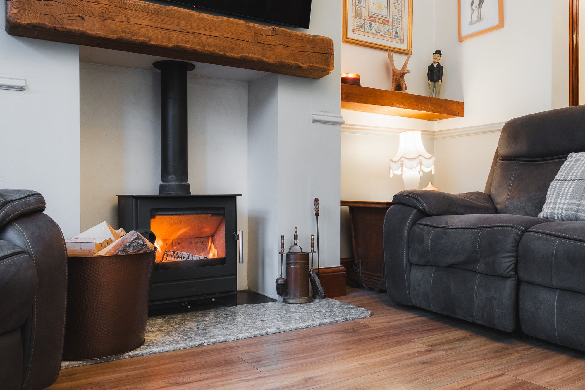 Distinct spaces, with a sociable feel, light streams in through the bay window into the lounge at the front, capably warmed by an efficient log-burning stove ensuring a cosy ambience during the winter months. In the hall, lounge and dining room, the newly laid floor has been insulated beneath to ensure a cosy warmth.