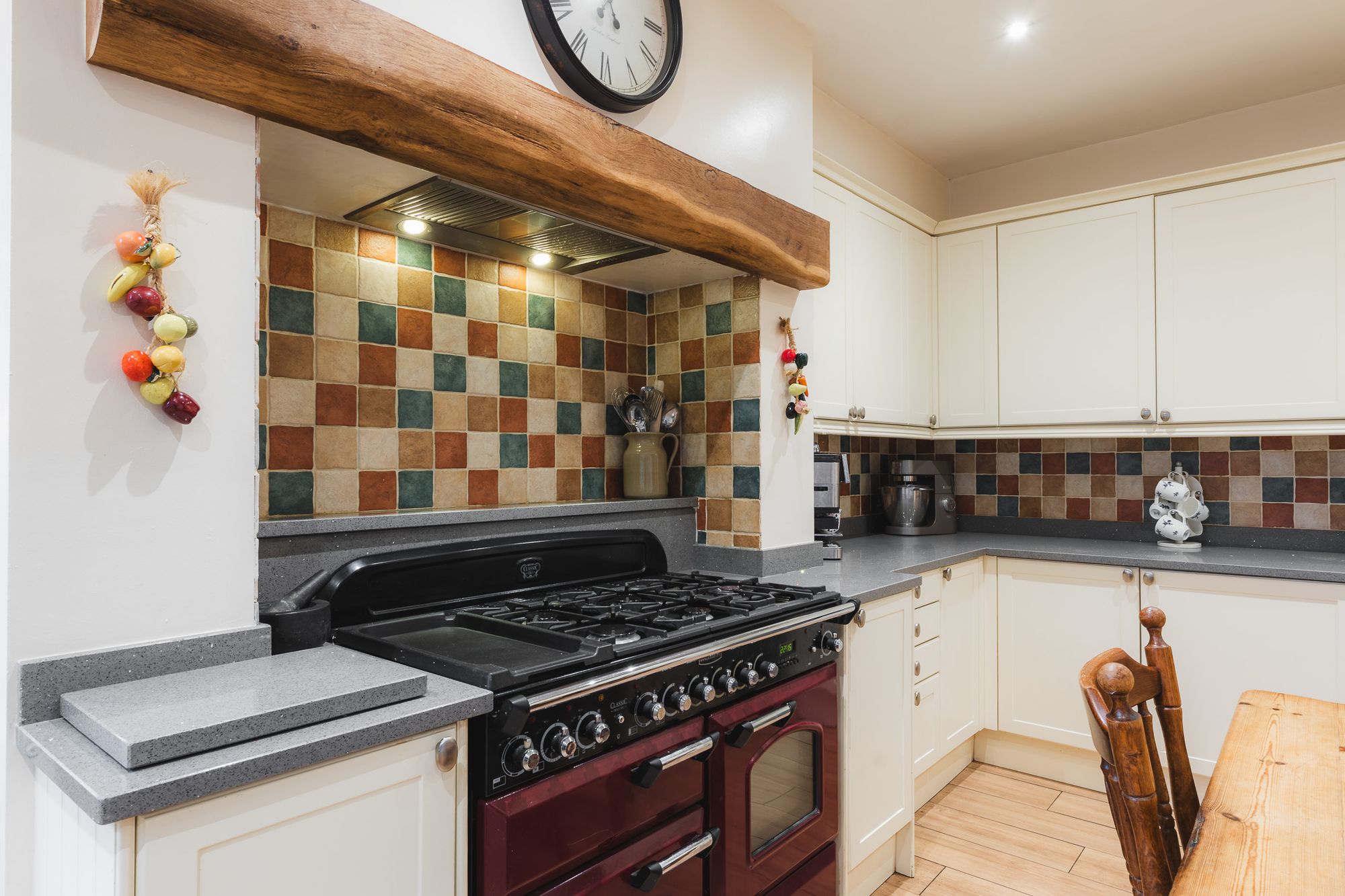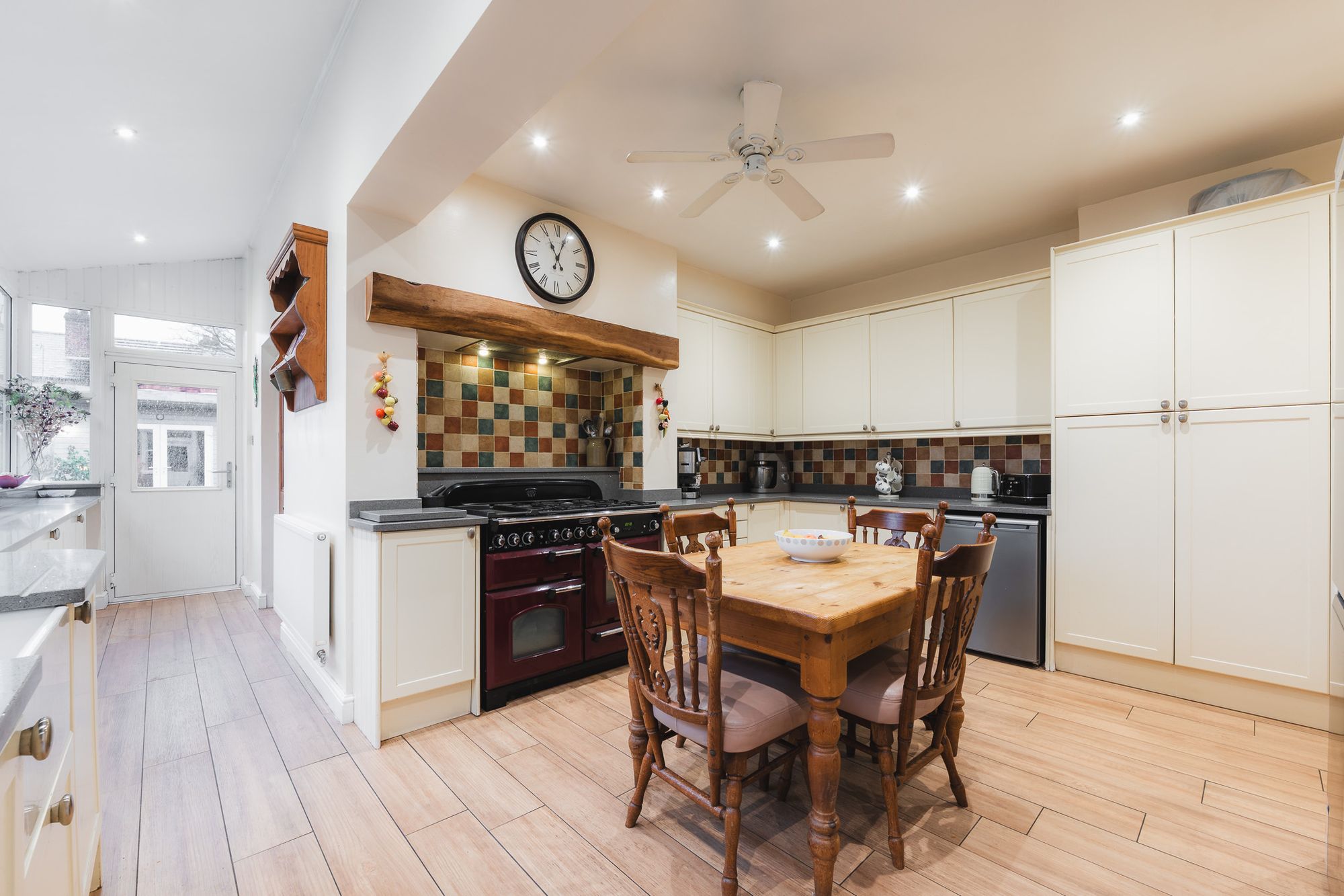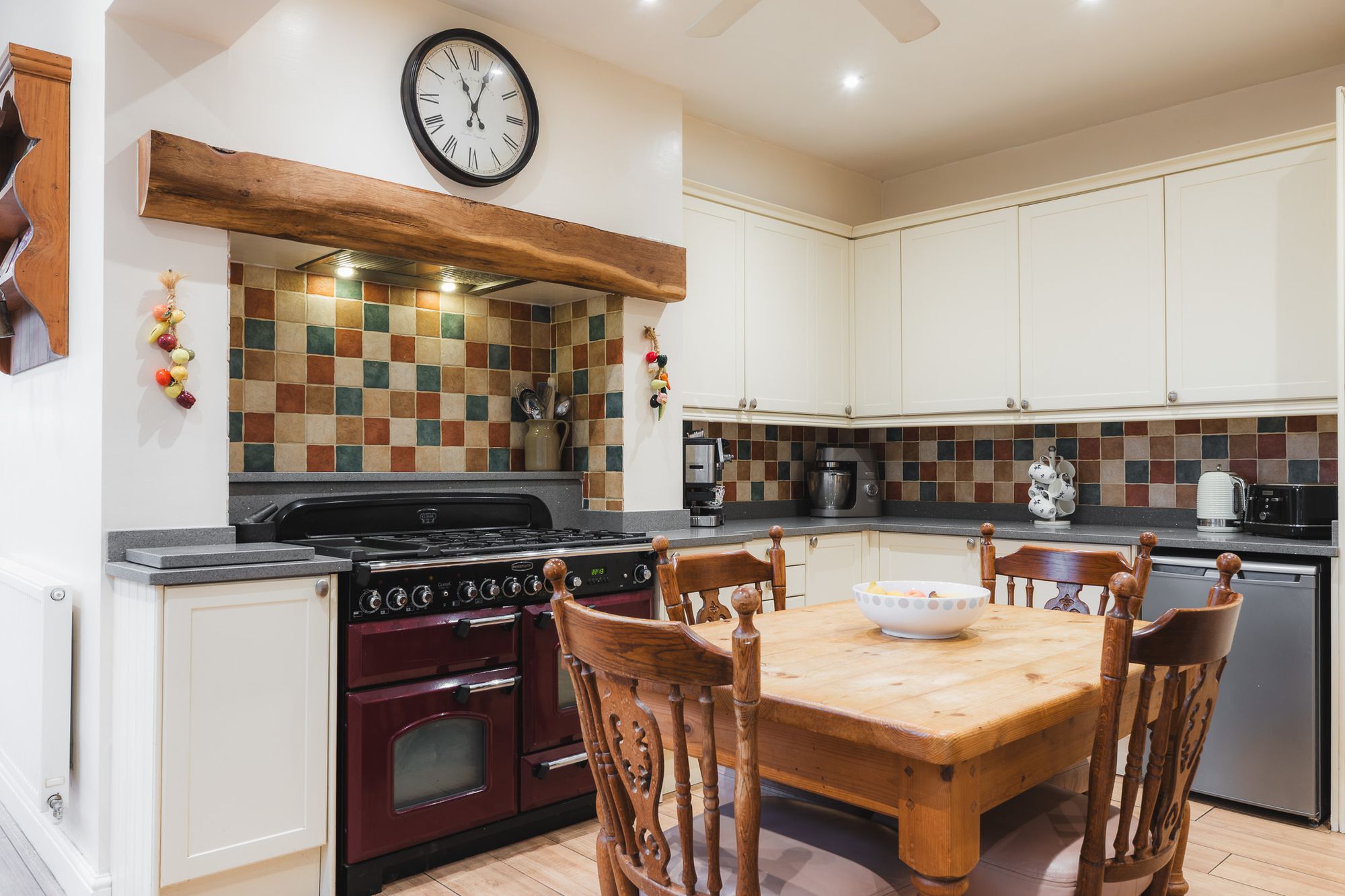 Returning to the entrance hallway, admire the panelling on the warm oak staircase, where a handy cupboard is ideal for storage. Continue ahead into the kitchen, where a more contemporary feel sits easily alongside the home’s Victorian roots. The former chimney breast now houses a tall, capacious built-in larder cupboard - perfect for tins and dry goods, preceded on entry to the kitchen by a full-height cupboard ideal for storing dishes and servingware.