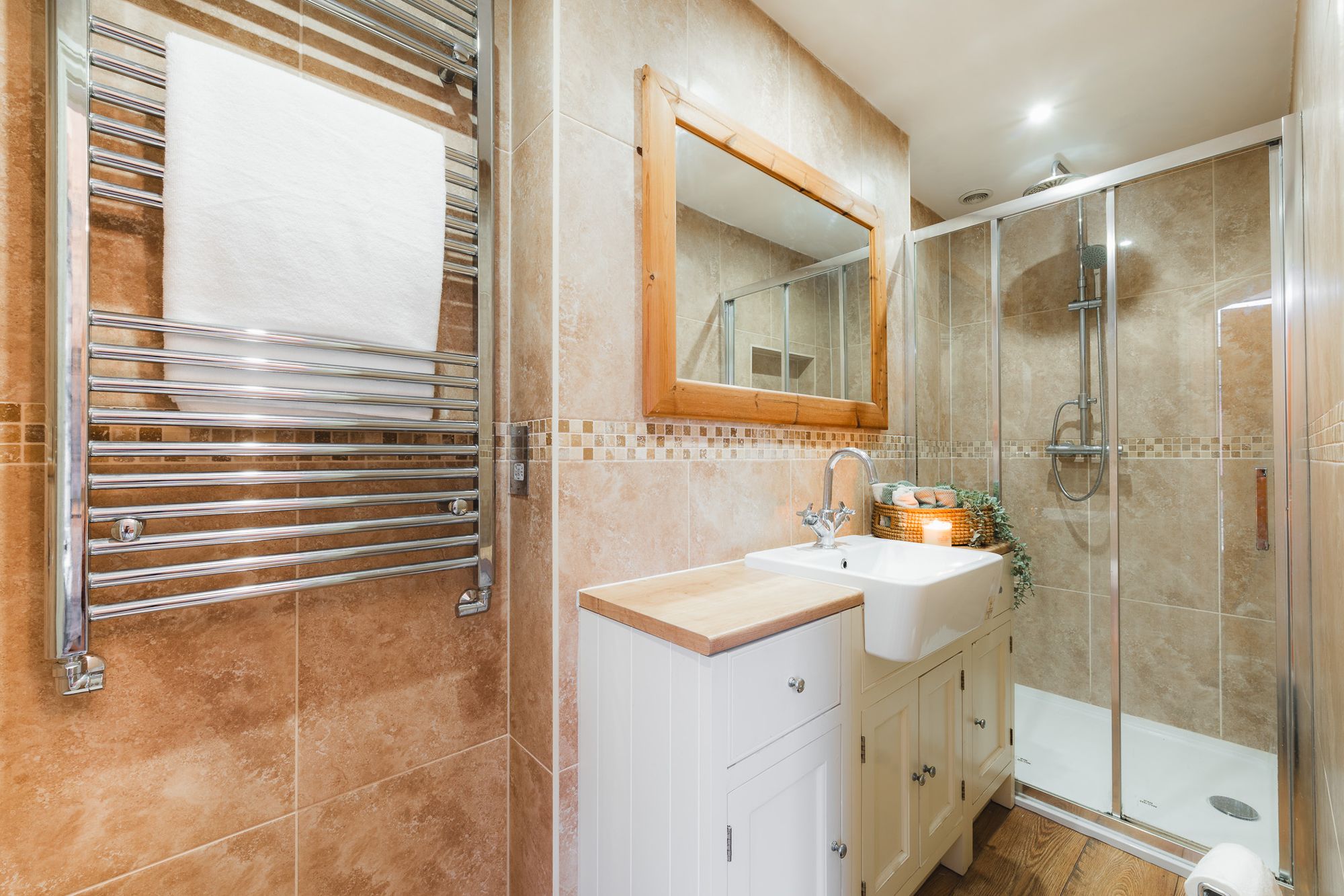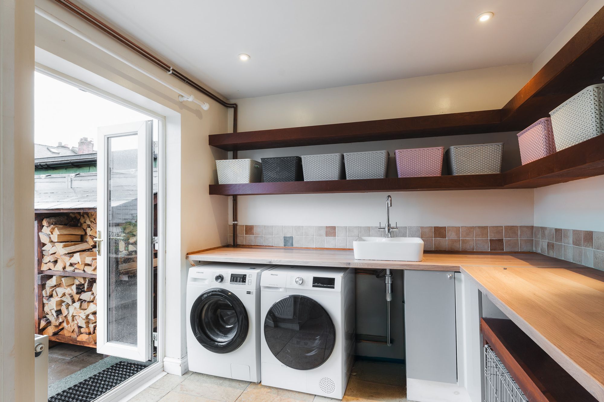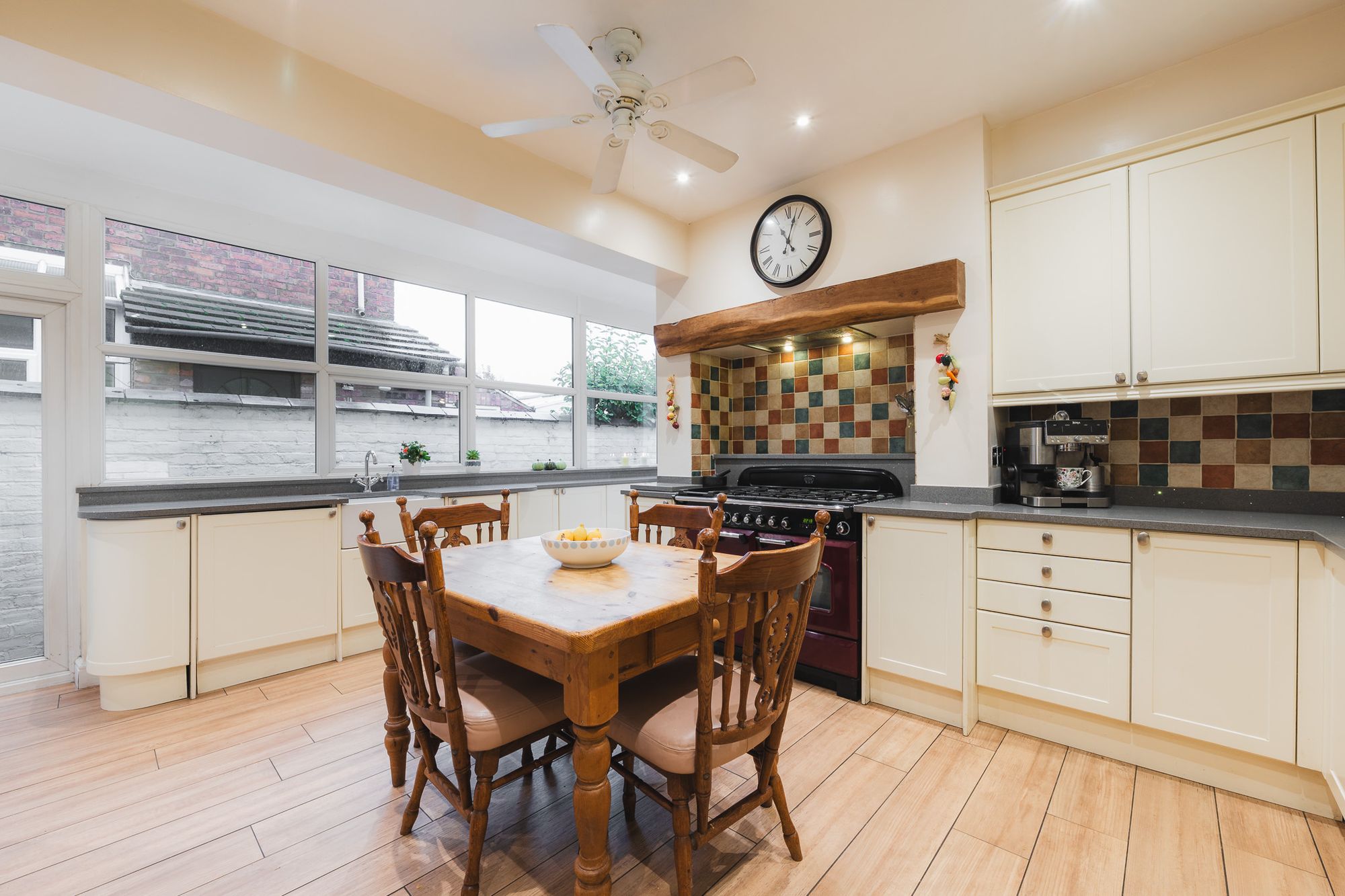 Returning to the entrance hallway, admire the panelling on the warm oak staircase, where a handy cupboard is ideal for storage. Continue ahead into the kitchen, where a more contemporary feel sits easily alongside the home’s Victorian roots. The former chimney breast now houses a tall, capacious built-in larder cupboard - perfect for tins and dry goods, preceded on entry to the kitchen by a full-height cupboard ideal for storing dishes and servingware.