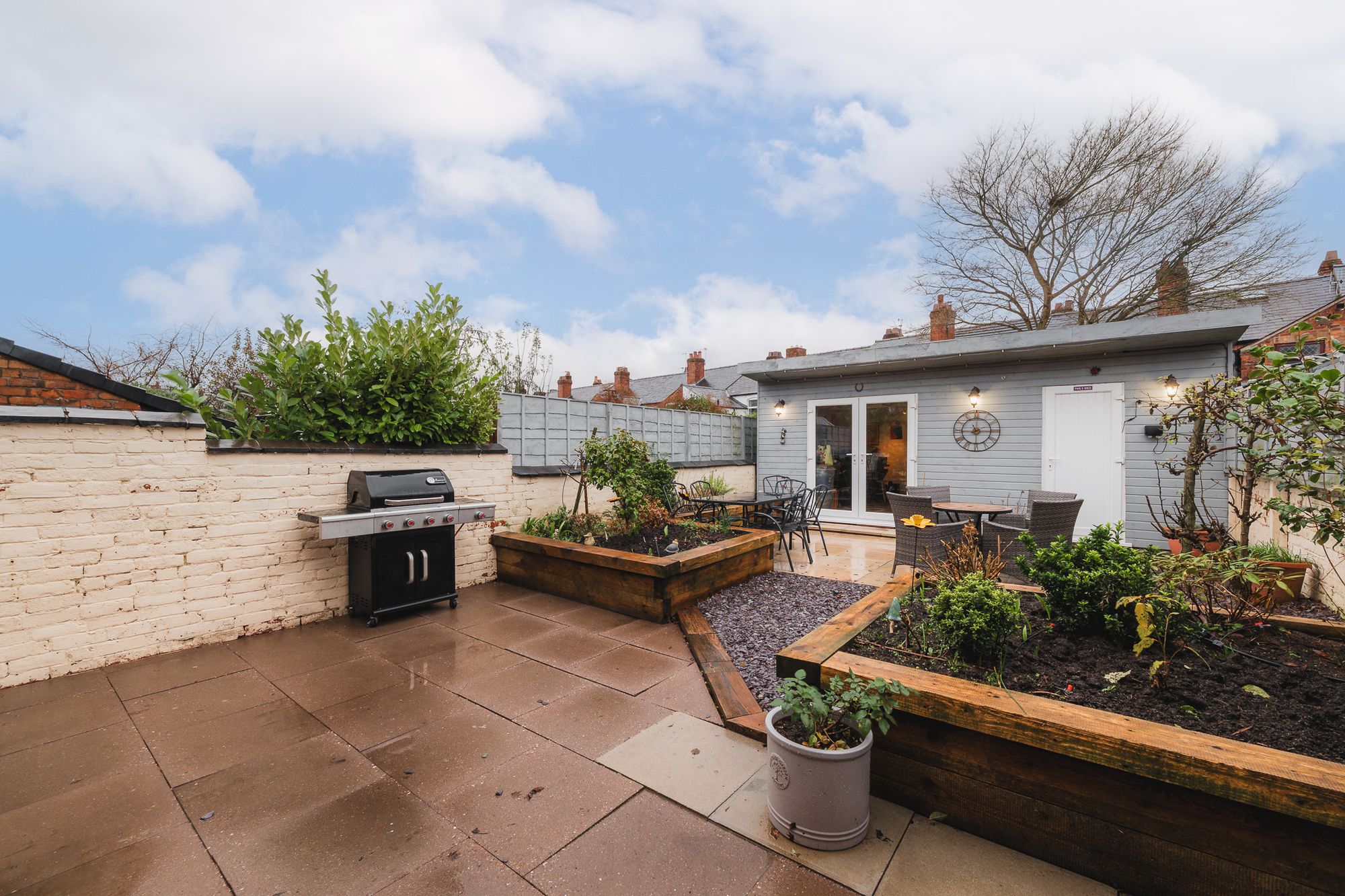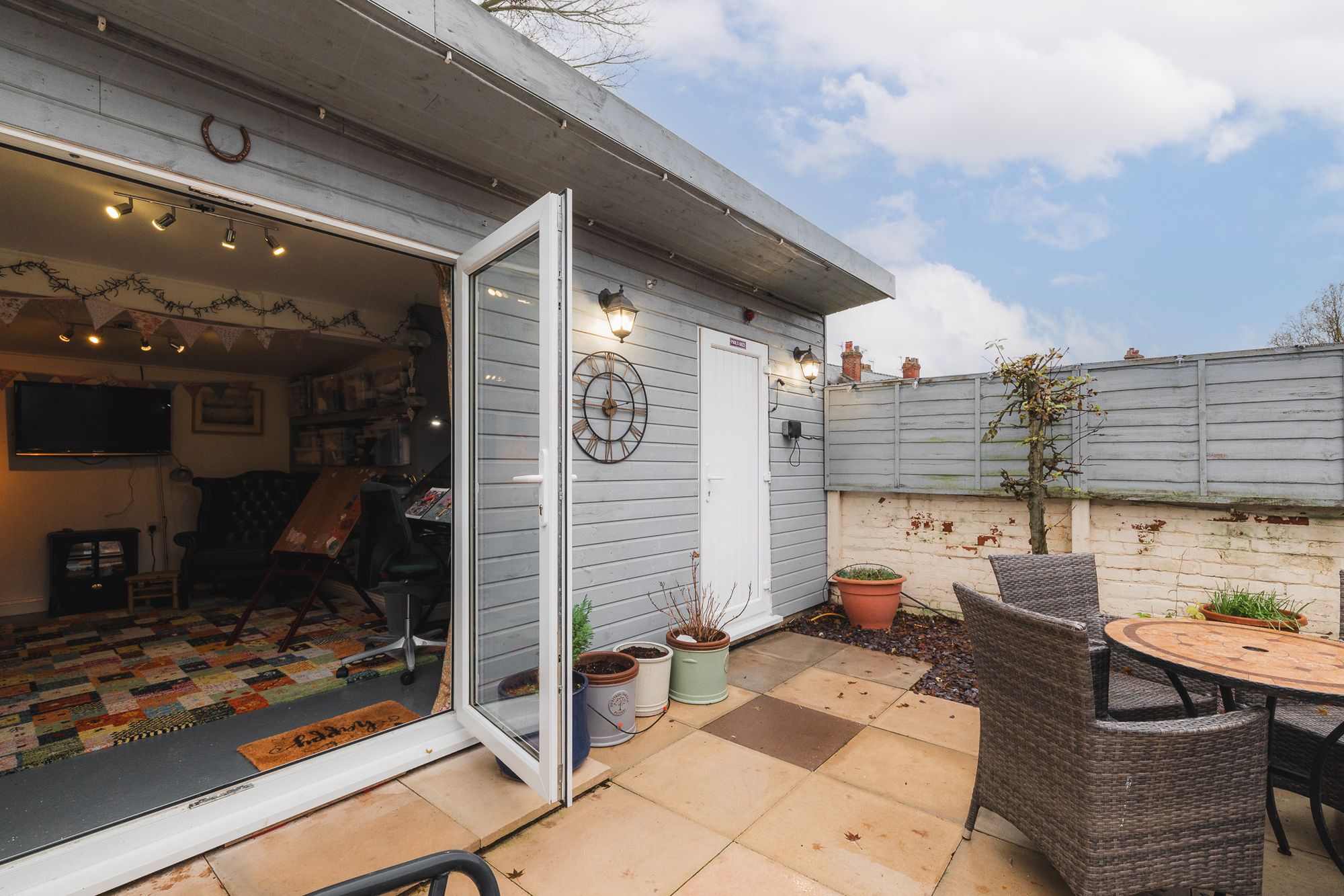 Step out from the utility room and sense the seclusion and serenity of the garden. A paved terrace leads the way to the garden room - part studio, part playroom, part office - a flexible room with double doors that open fully to catch the last of the afternoon sun.