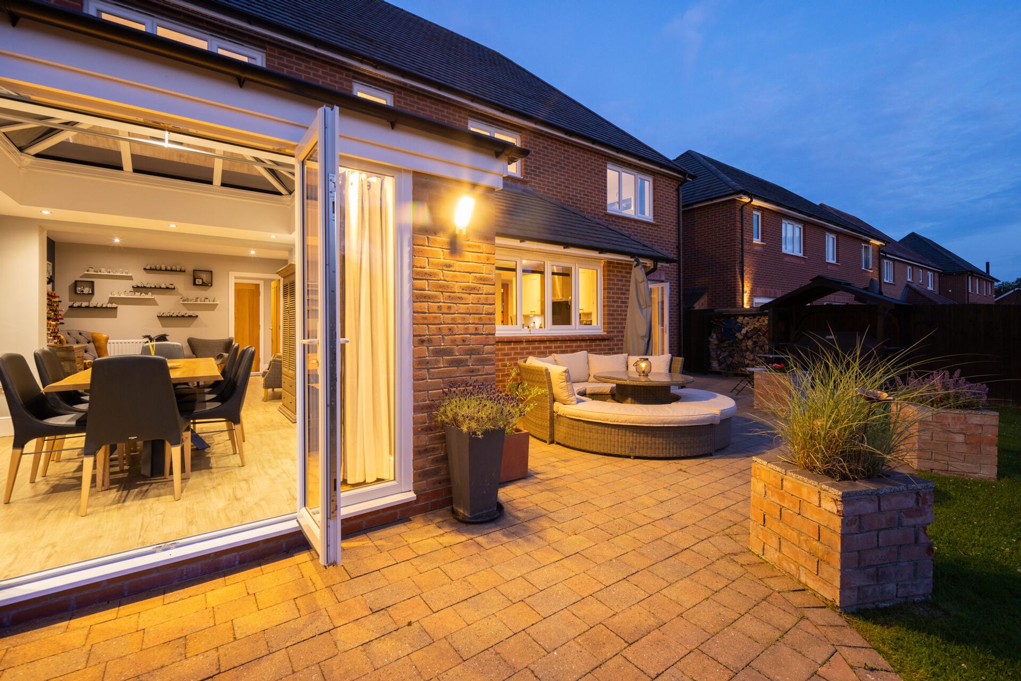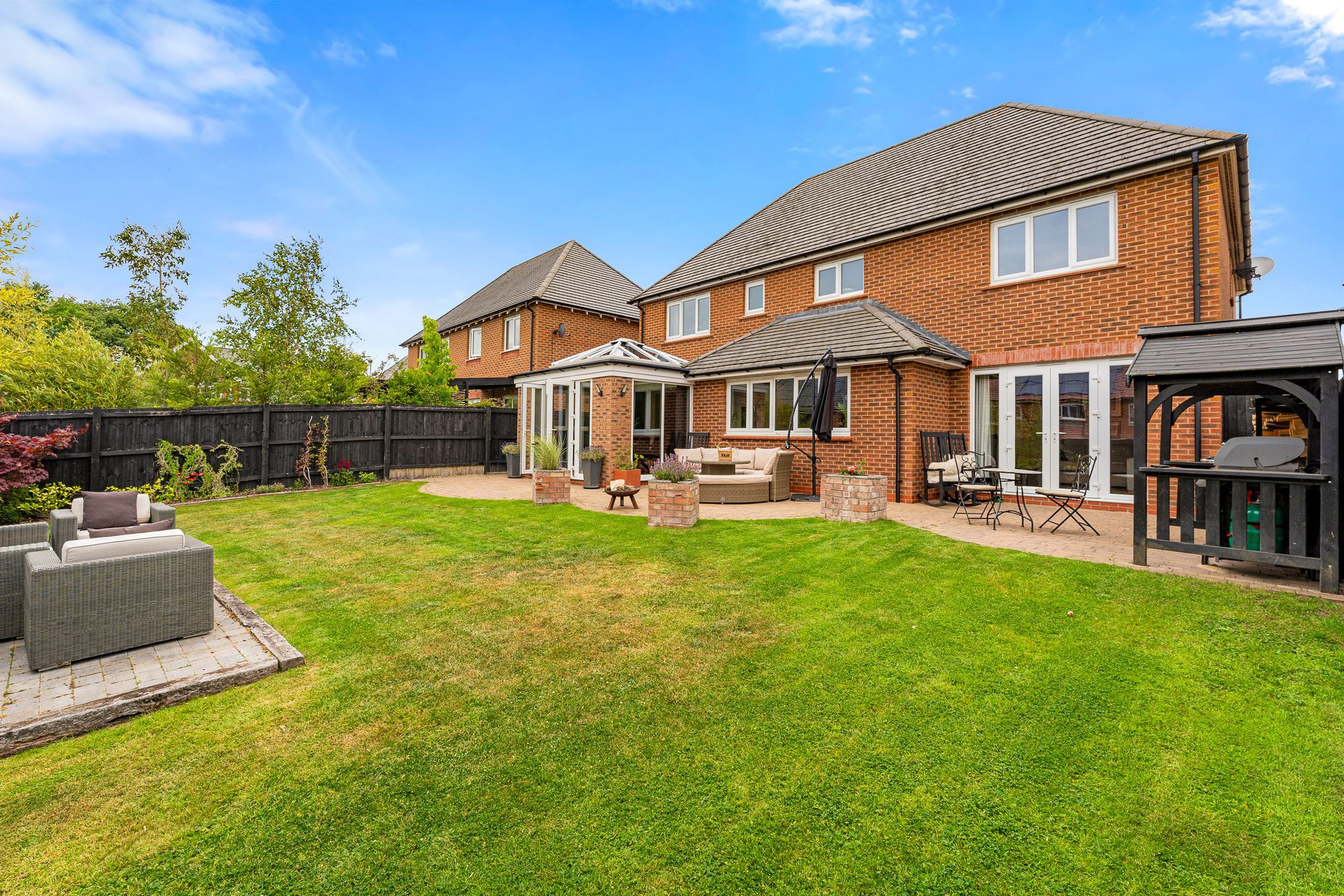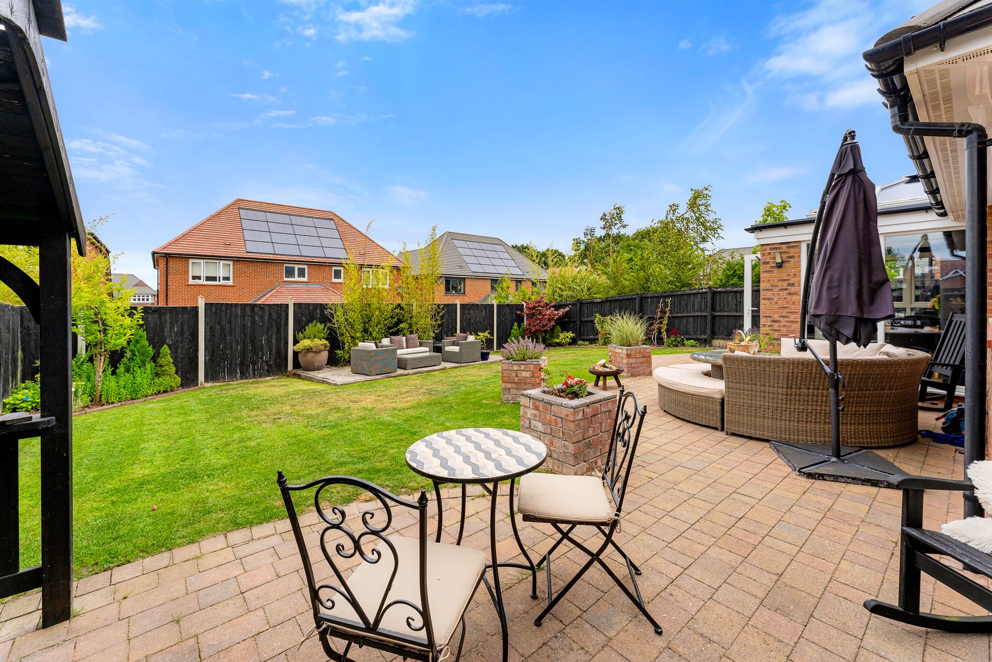 The west-facing rear garden has been professionally landscaped and is laid mostly to lawn, with patio areas providing the perfect spots for dining, barbecues, or relaxing with a glass of wine as the sun goes down. There are trees and established planting around the borders for privacy, while block paving wraps around the home and continues to the front. The plot is fully enclosed with high fencing, making it both secure and private.