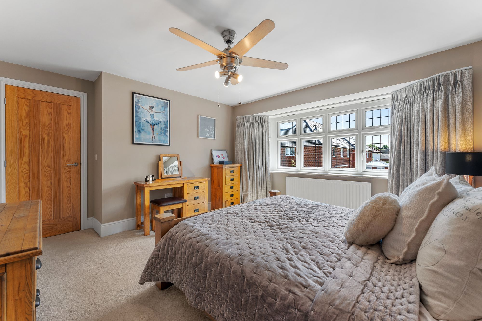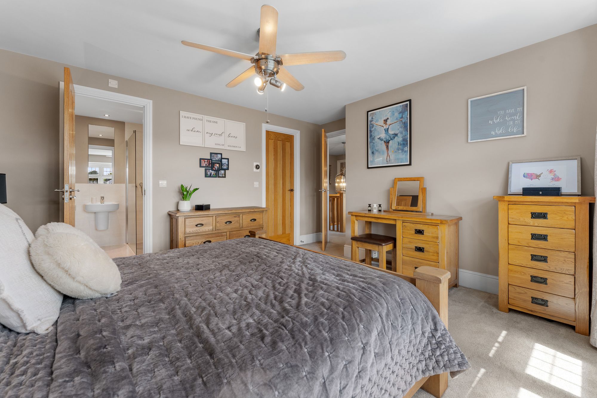 Bedroom two also benefits from its own en suite, while bedrooms three and four share a modern family bathroom, complete with a separate bath and shower. All bedrooms offer ample space for desks or wardrobes, and the layout provides versatility for working from home or hosting guests.