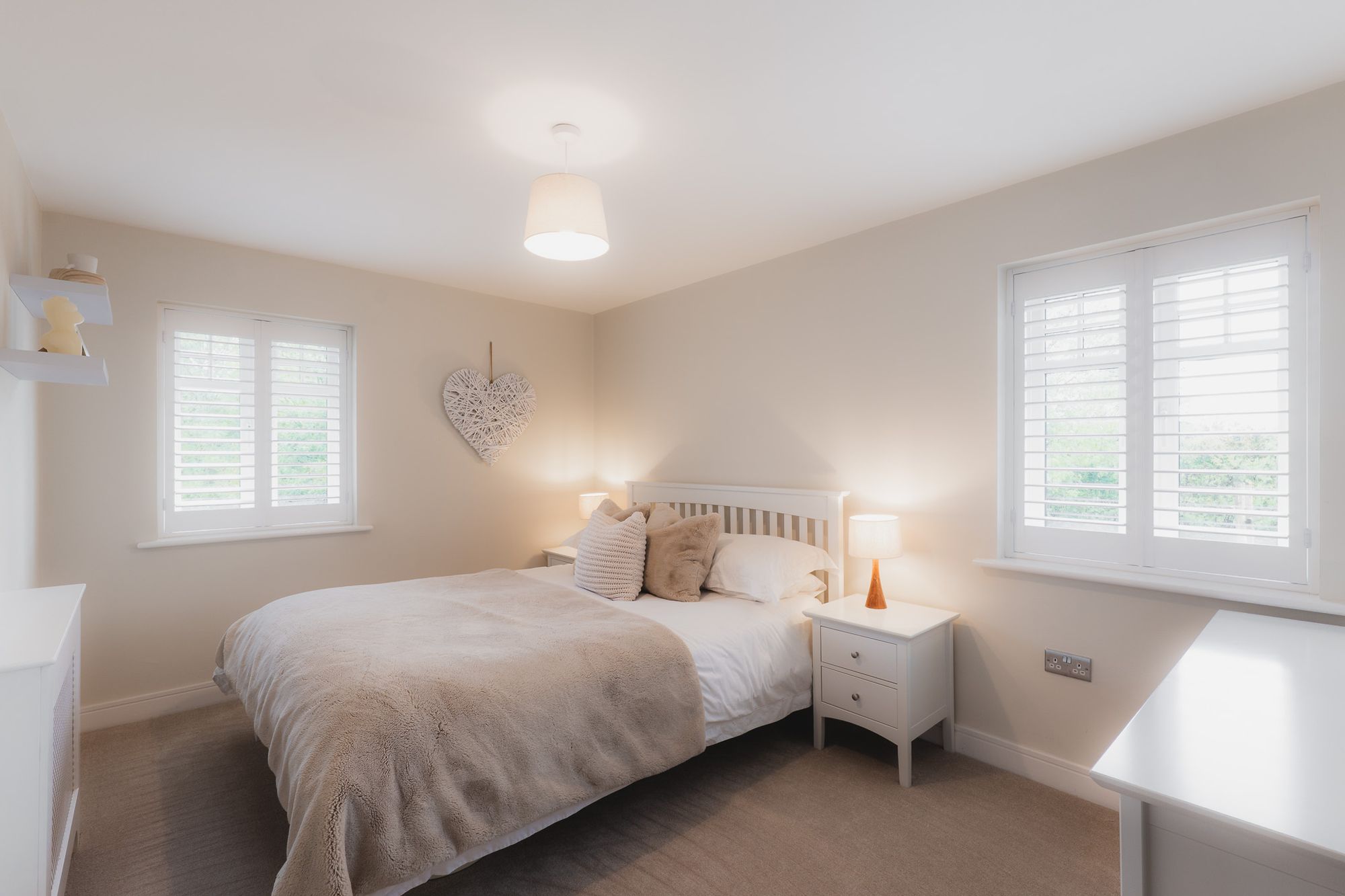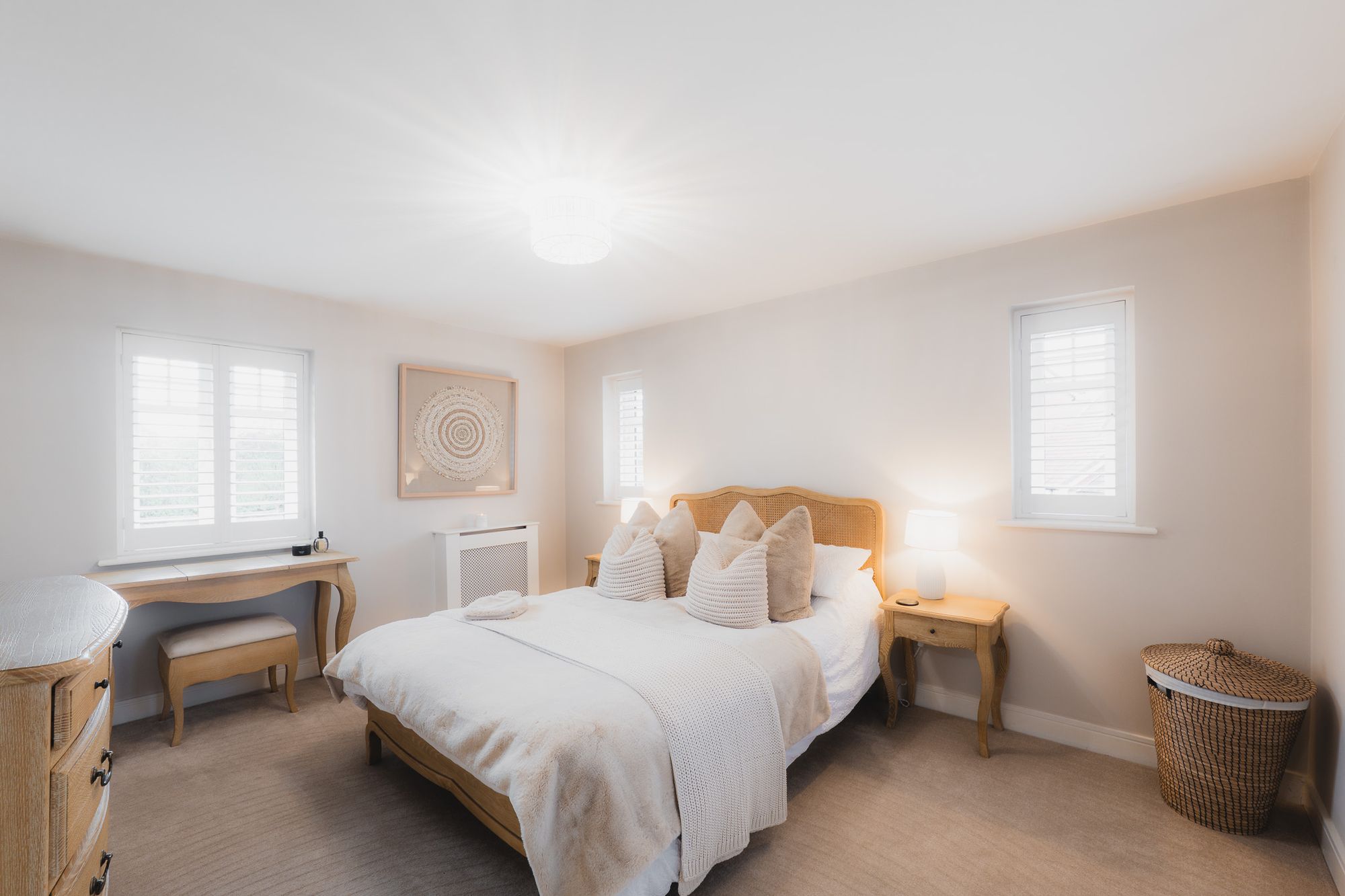 Here, discover the first of five bedrooms over two floors on the left, with windows to two sides and space for a king size bed alongside wardrobe storage.