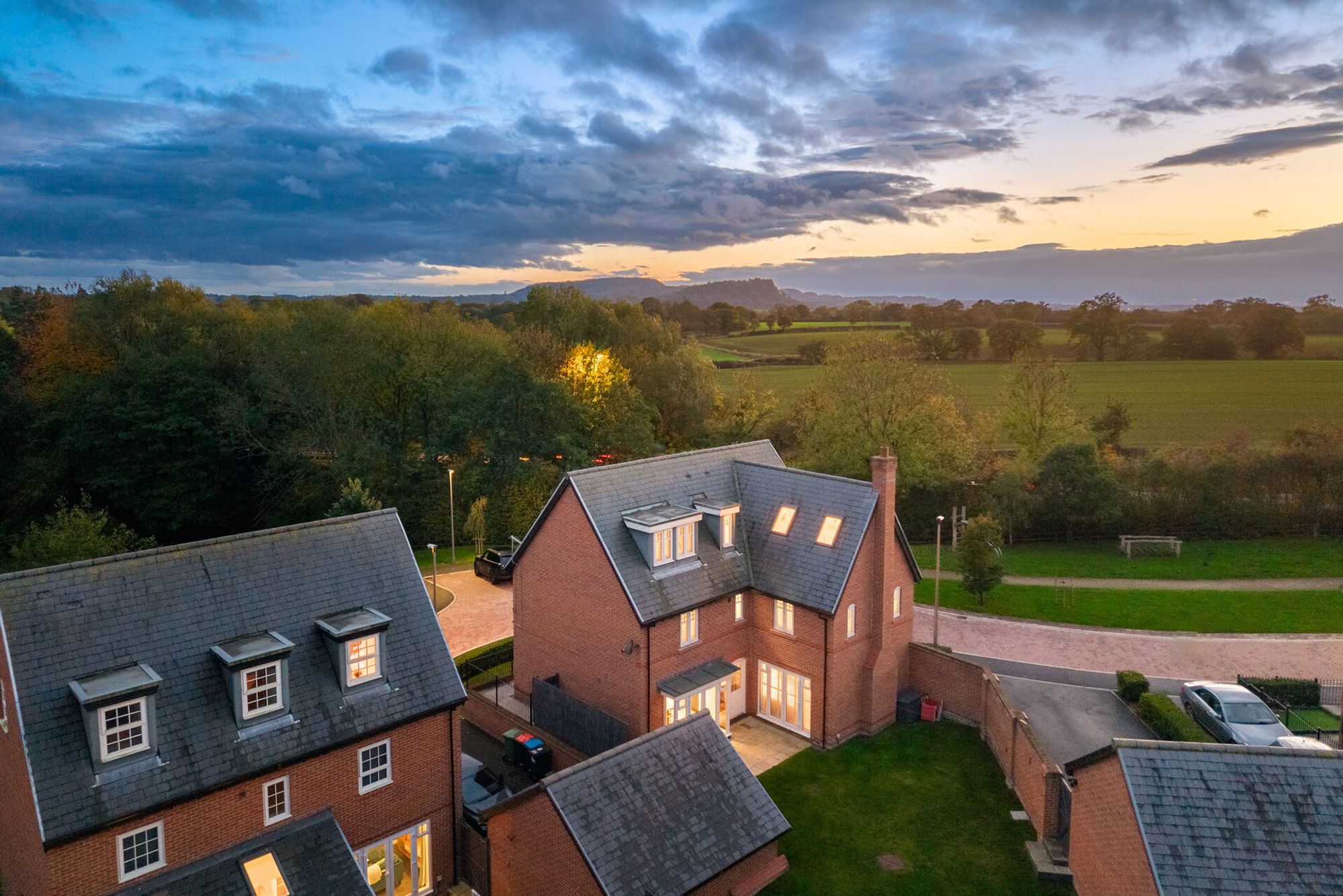 From morning coffee at Ginger & Pickles to countryside walks along leafy lanes, life at No. 9, Tiresford Close flows easily between village energy and peaceful retreat. With school buses to The King’s School and Ellesmere College stopping nearby, and Tarporley’s independent shops, delis and pubs just a short stroll away, it’s perfectly placed for family life, Friday night drinks and everything in between.