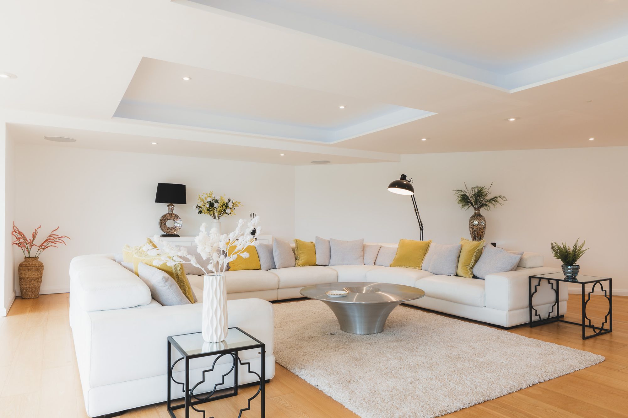 Returning to the entrance hall, to the right discover a cloakroom with washbasin and WC, continuing the motif of simple, spa-like sophistication in its décor. Also to this side of the staircase, discover a large, light and bright room, ideal as a sitting room, study or even a playroom.