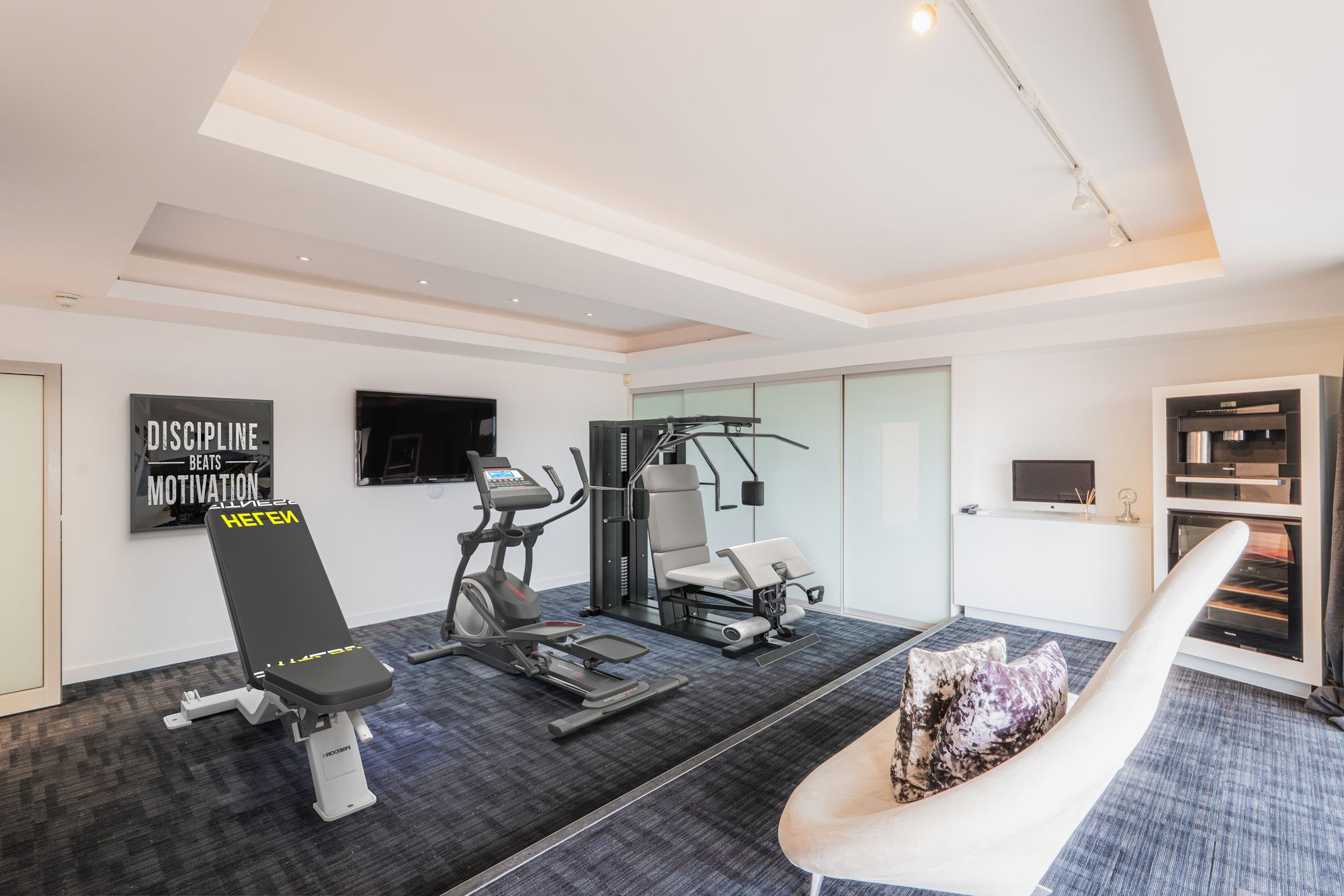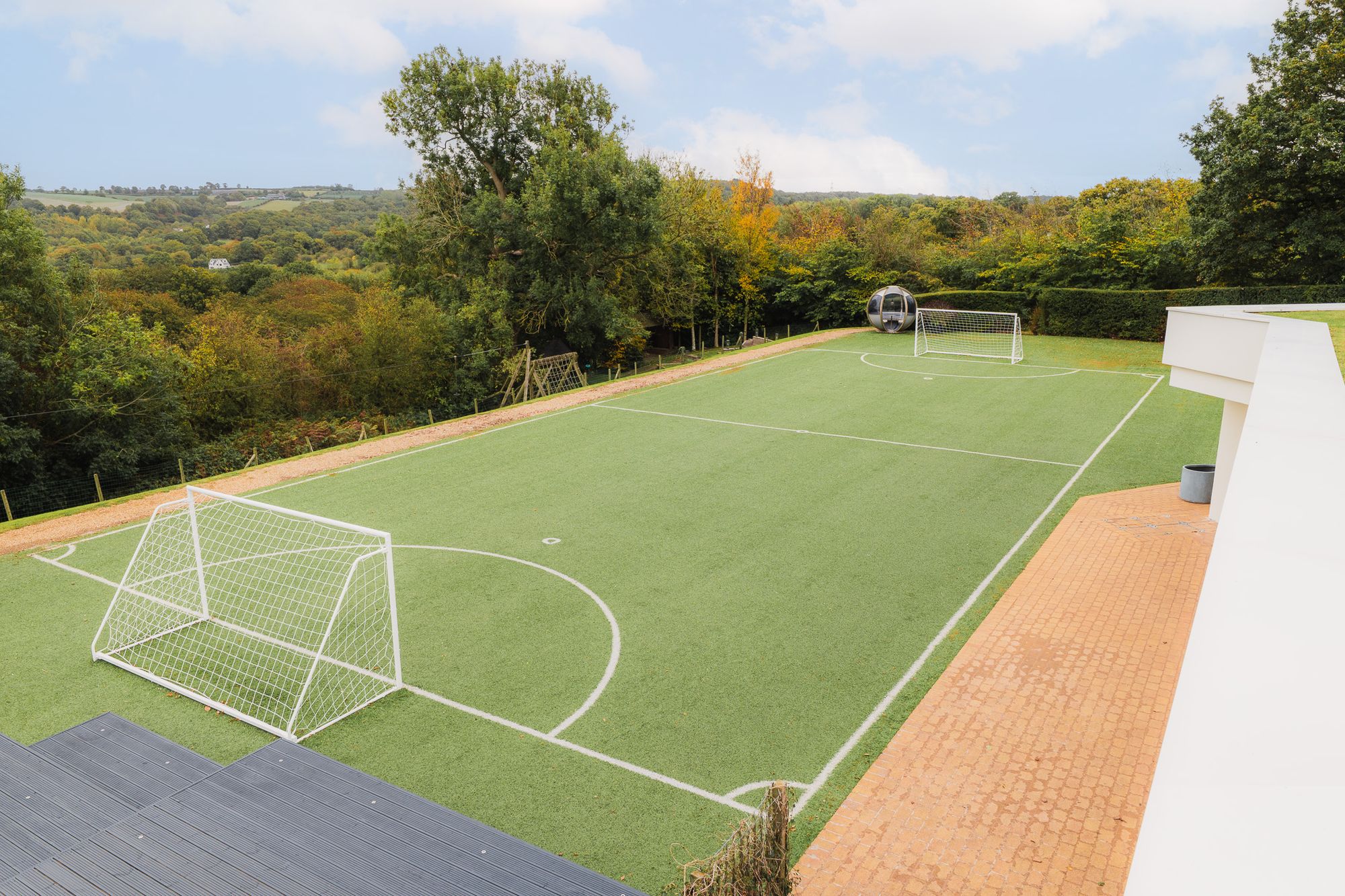 Doors invite you out to the garden at every opportunity, for a kick about on the vast Astroturf football pitch on the ground level, or to clink glasses whilst dining al fresco on the terrace and taking in the phenomenal view.
