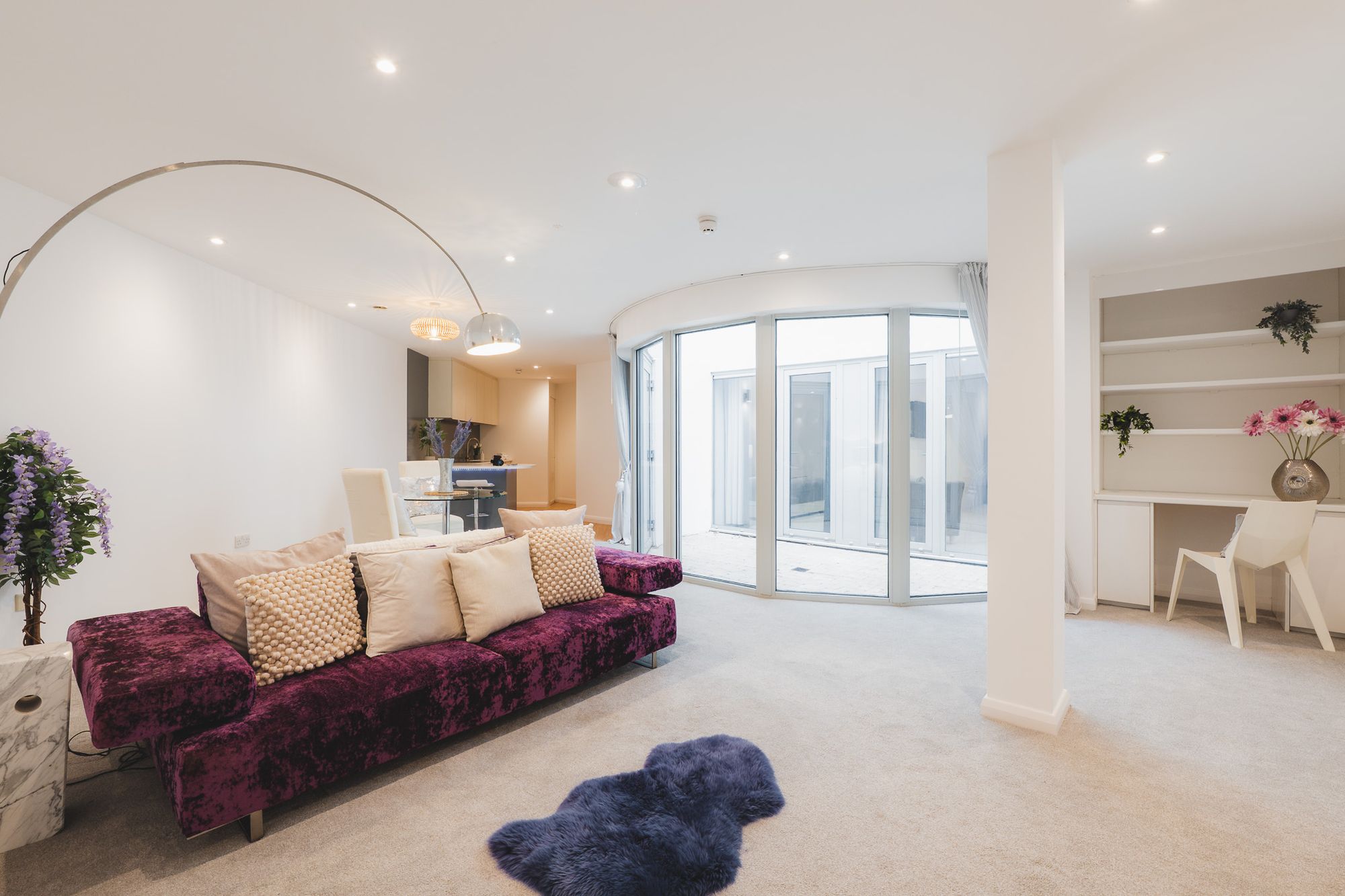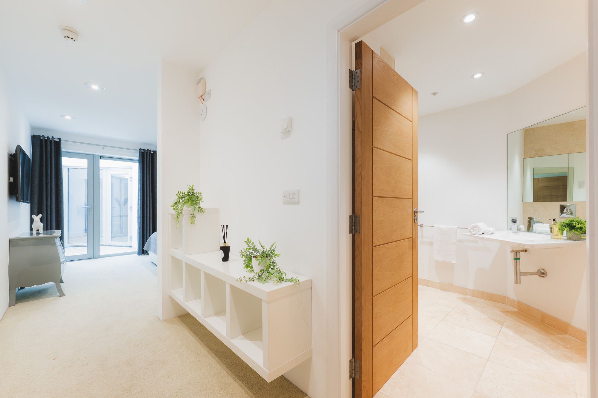 Take the stairs down to the lower ground level and to a self-contained apartment with bedroom with dressing area, wet-room en suite, kitchenette and living room with a door out to the courtyard - a sublime suntrap in summertime.