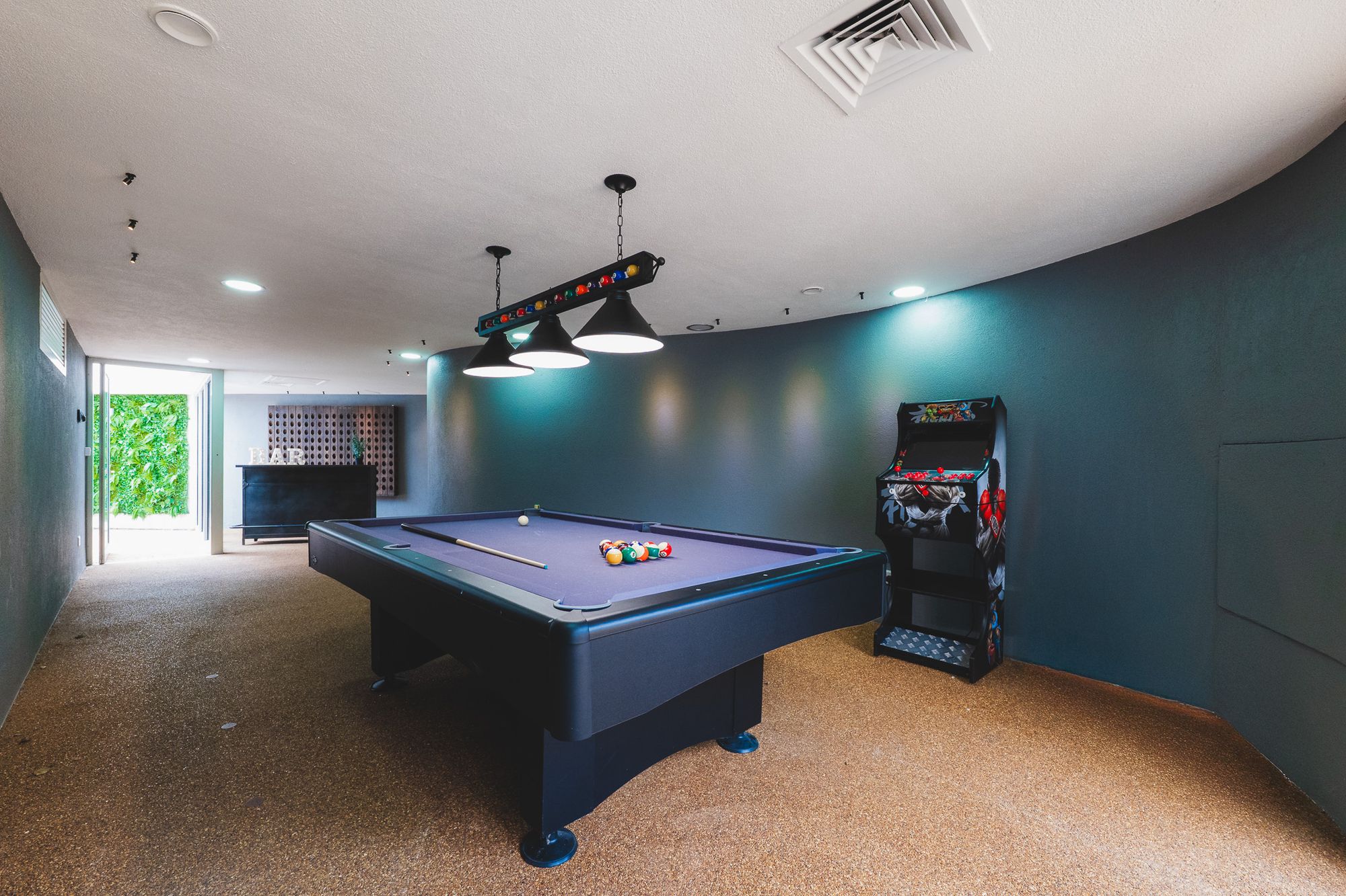 Returning to the ground floor, follow the softly illuminated stairs descending to the entertaining level where cocktails await in the bar area, before stepping down for decadent dining beneath the gallery landing of the floor above - an atmospheric hub ideal for entertaining.