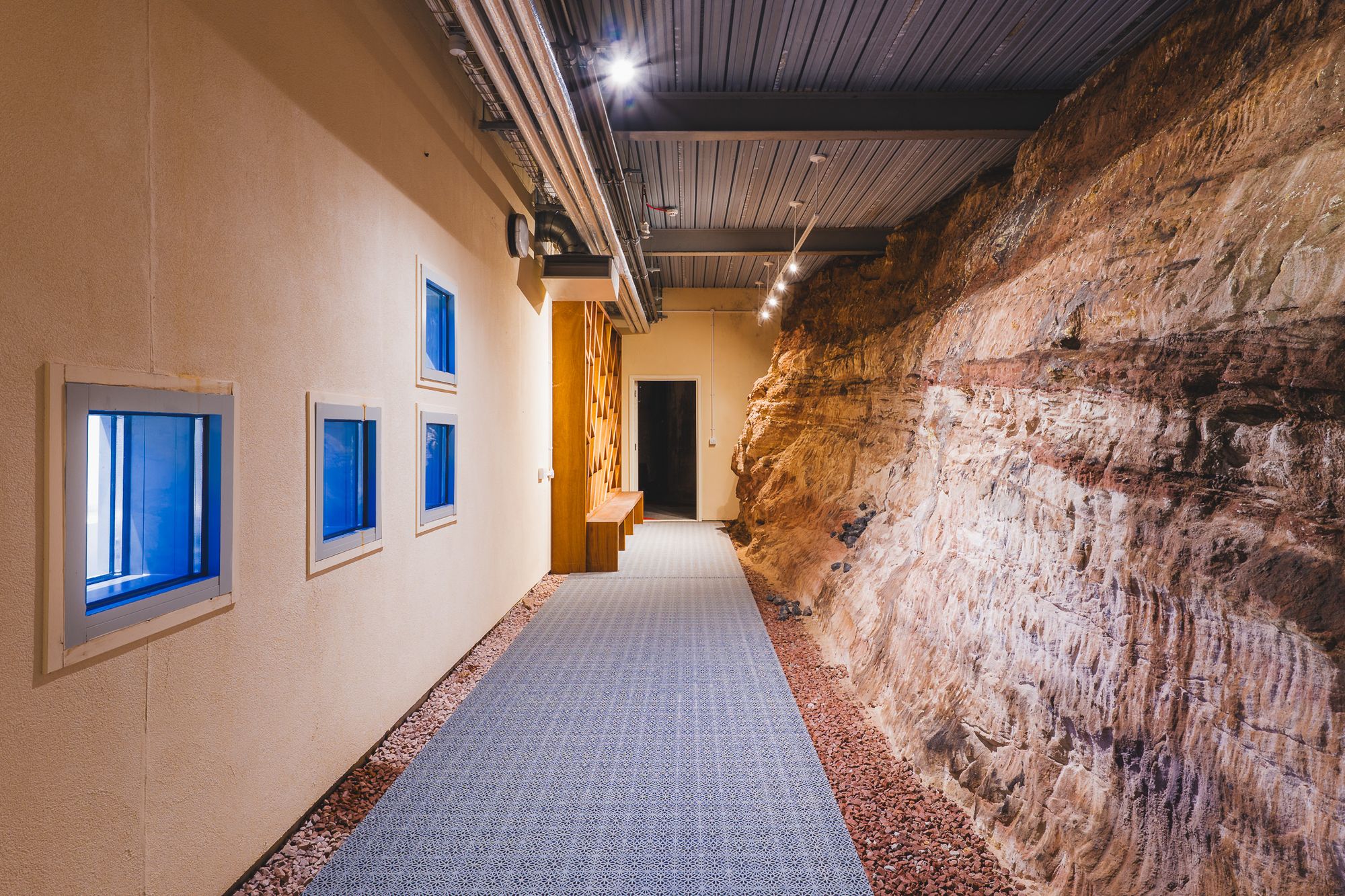 Most extraordinary of all, a metal staircase leads down into a cave in the sandstone itself, where a hidden walkway traces the very perimeter of the home. Carved directly into the rock, this remarkable space was engineered as both a design feature and a feat of craftsmanship, complete with wine storage and discreet access to the home’s pool.
