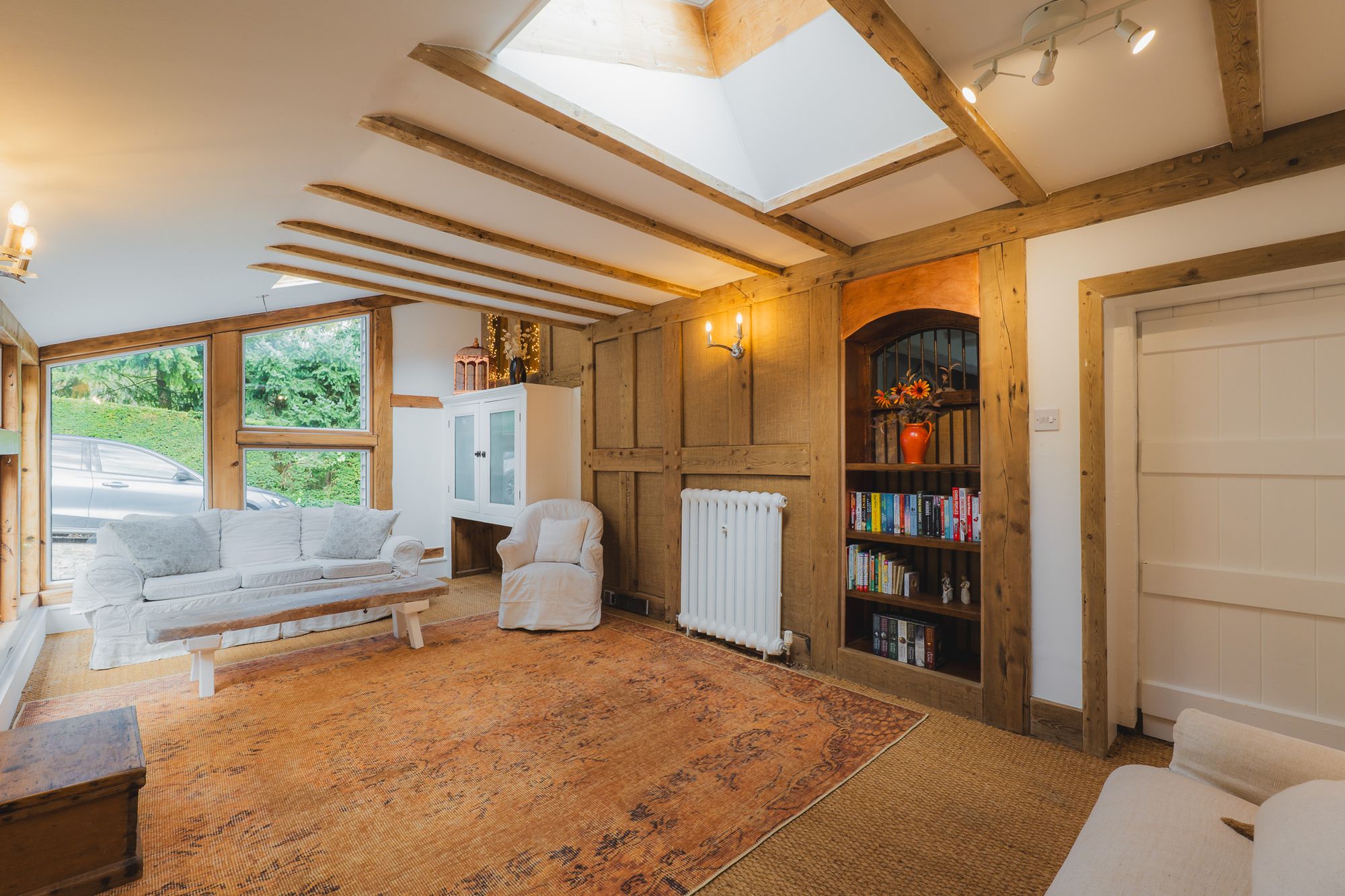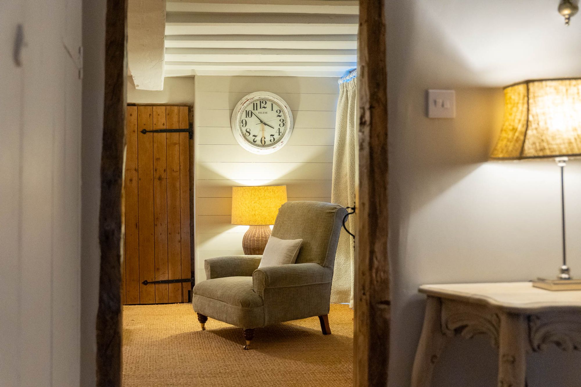 Along the hallway, what at first glance is a bookcase swings open to reveal a wonderfully versatile room - playroom, part home office - full of beams, timber-framed glazing and character. It’s a space that comes into its own at Christmas, when it transforms for family gatherings and festive games. A wonderful secret hideaway for children, or a space to work from home undisturbed, like so many of the rooms at The Bothy, adaptability is core to its function.