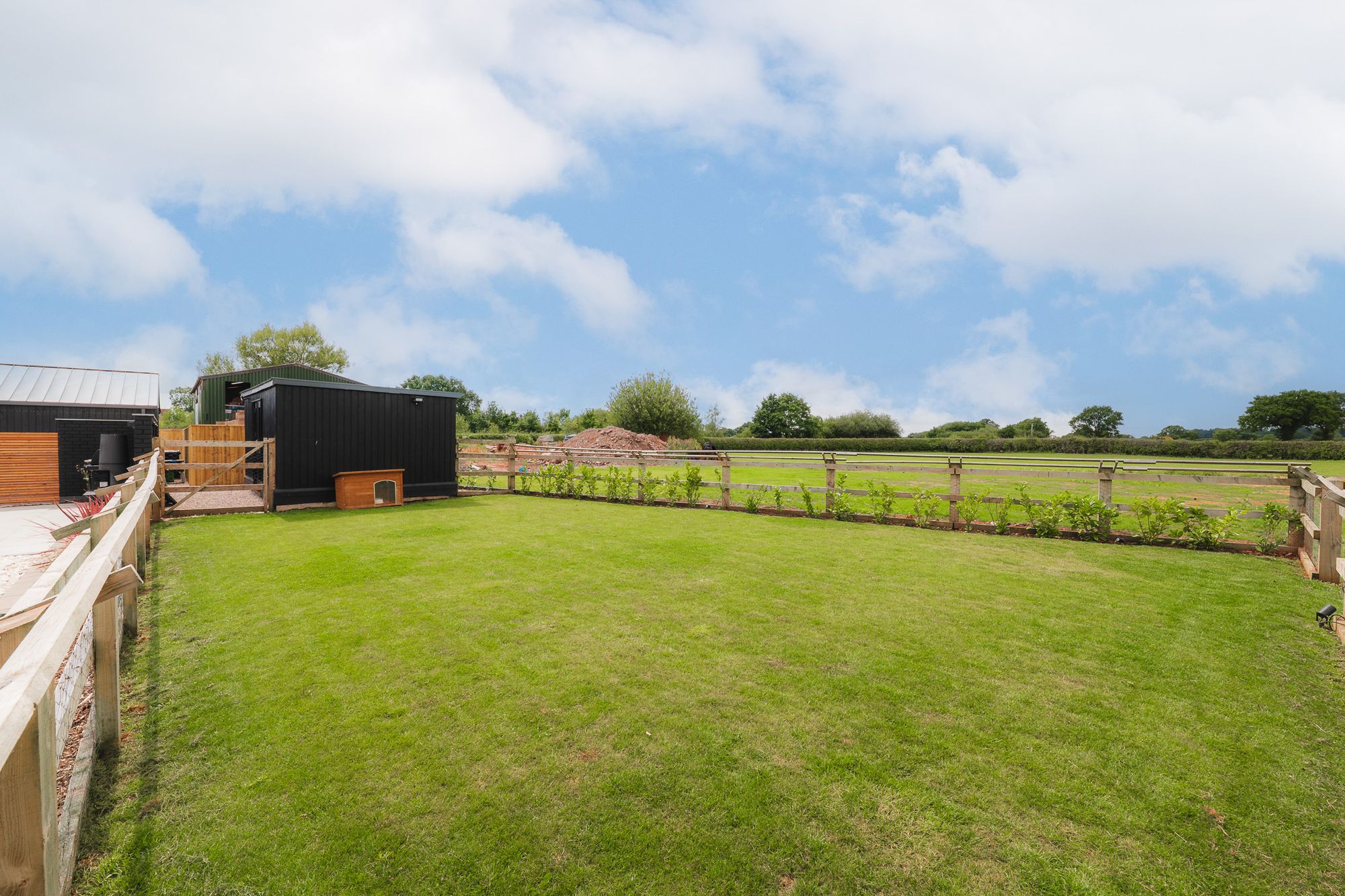 With plenty of lawn stretching out across the rear, fully enclosed and edged by open fields, children can roam, dogs can exercise, or, for those with equestrian interests the paddock offers scope to graze a pony.